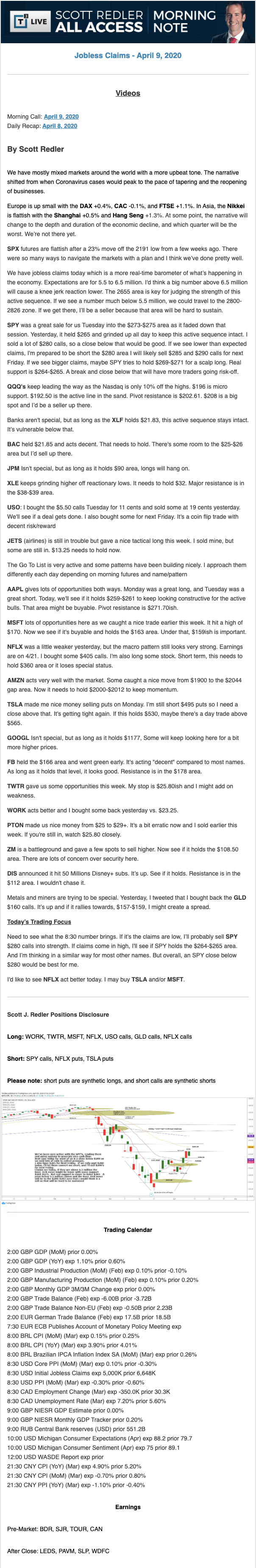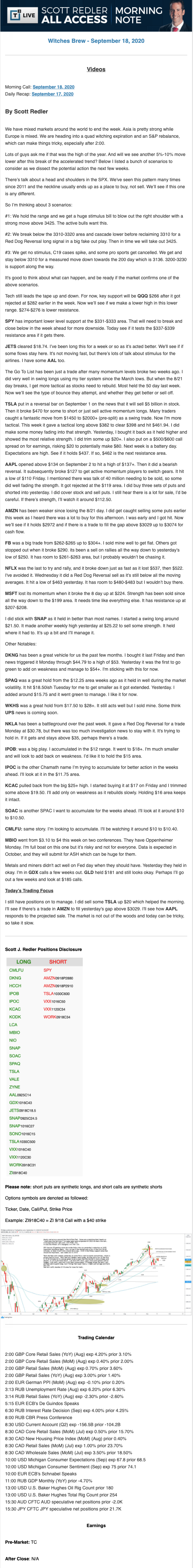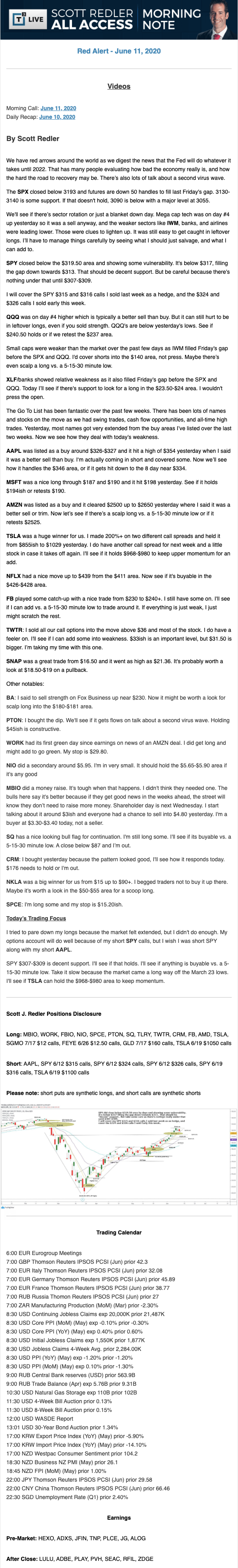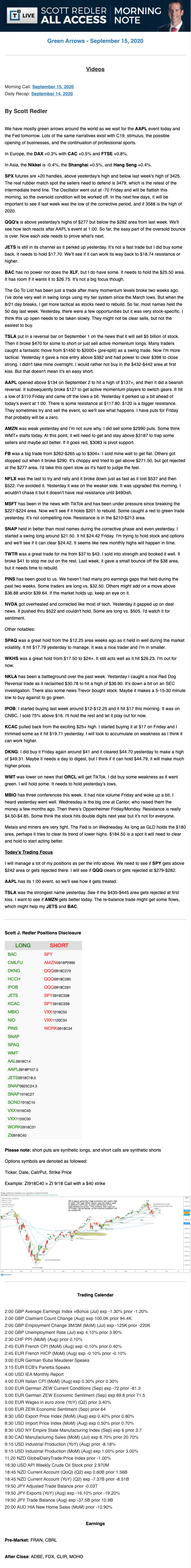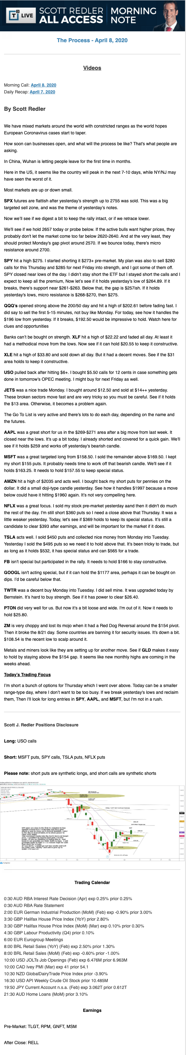Start every trading day with T3 Live Chief Strategic Officer Scott Redler's complete trading plan.