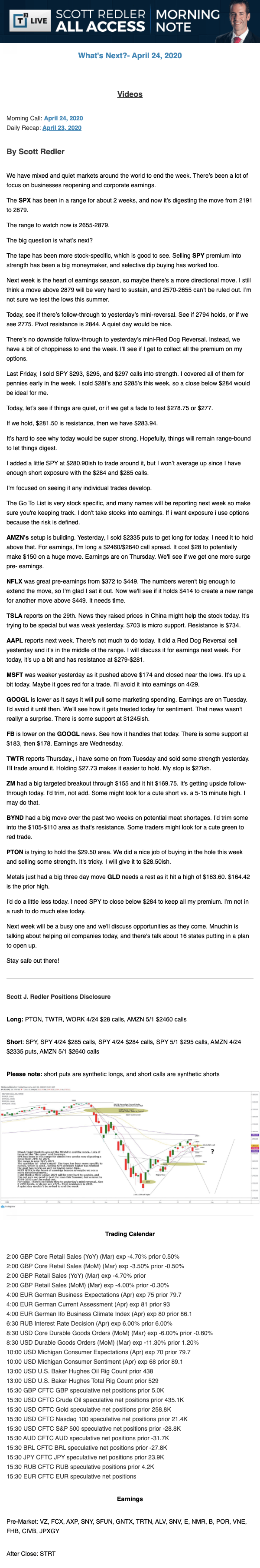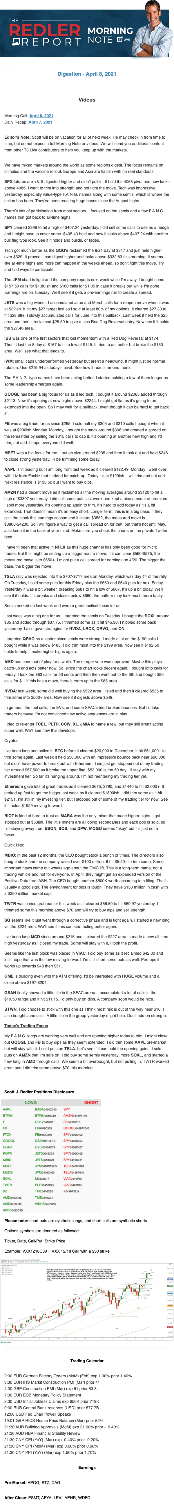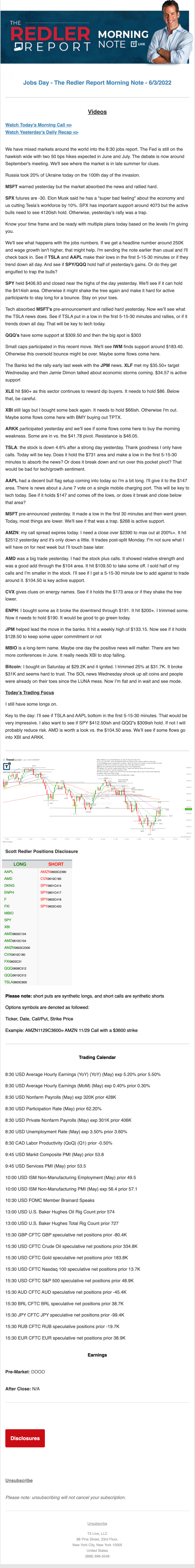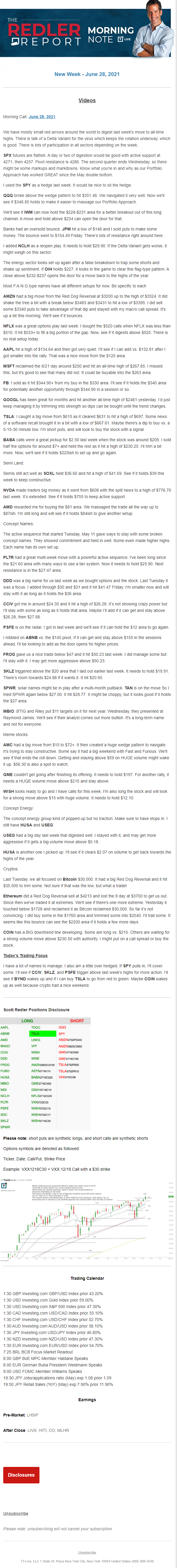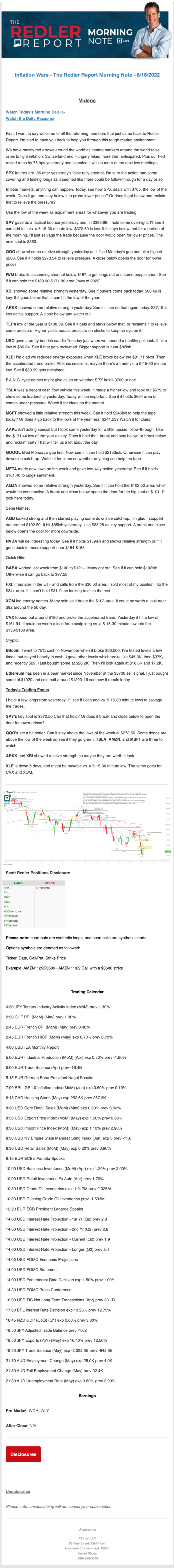 Start every trading day with T3 Live Chief Strategic Officer Scott Redler's complete trading plan.