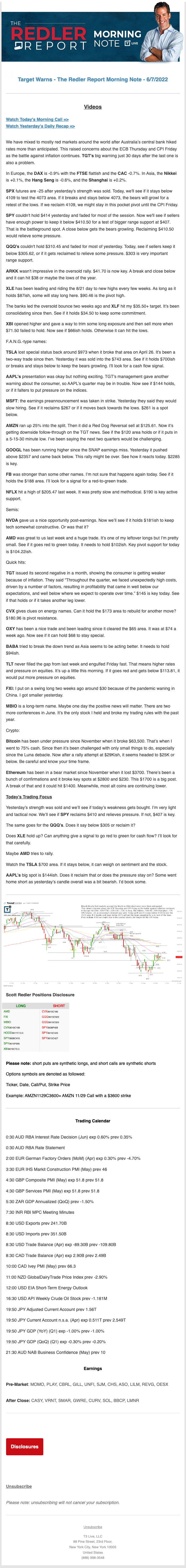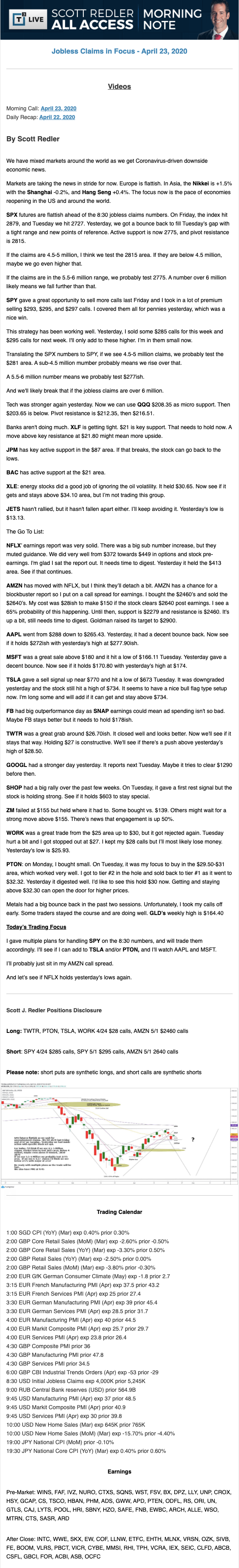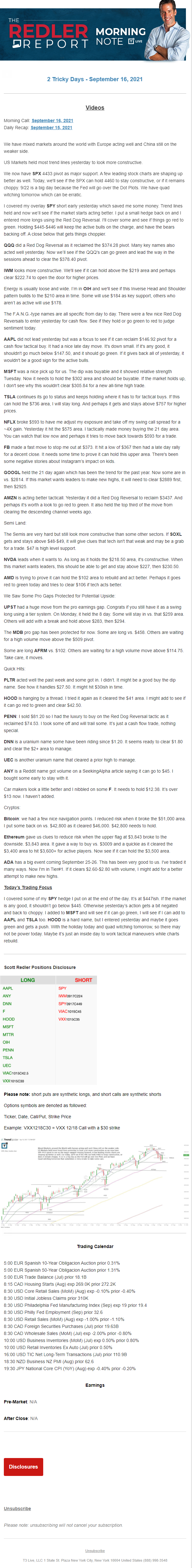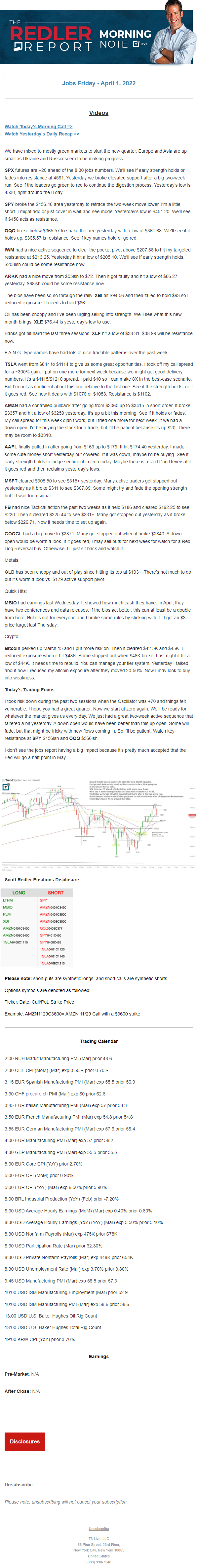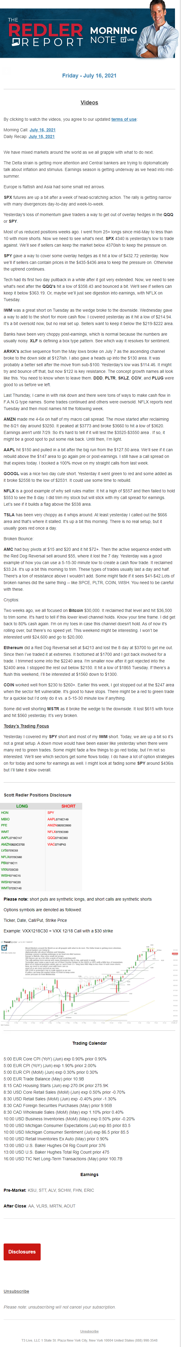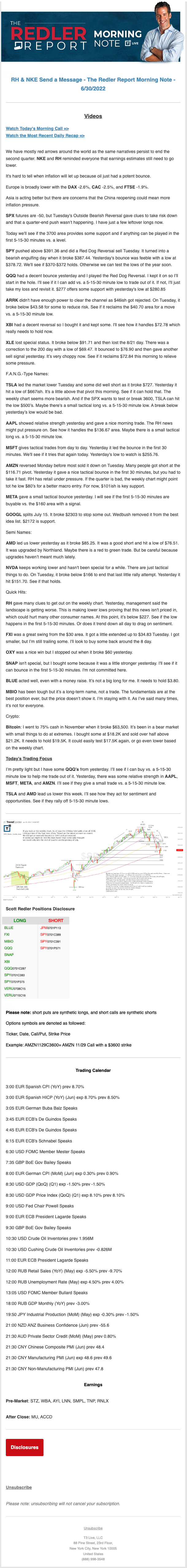 Start every trading day with T3 Live Chief Strategic Officer Scott Redler's complete trading plan.