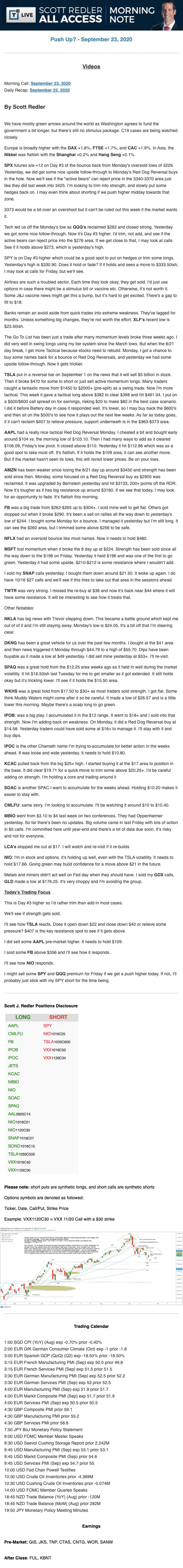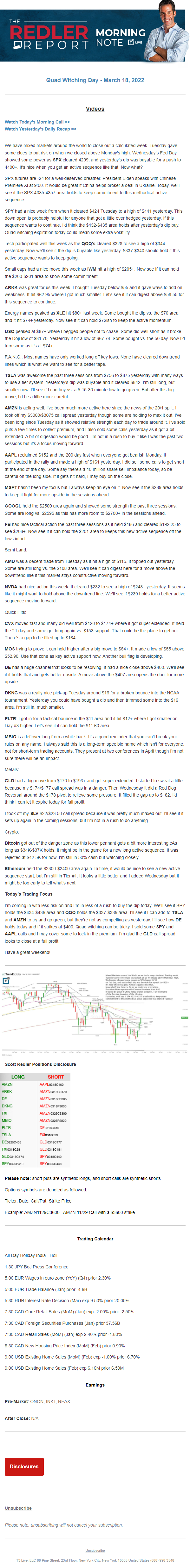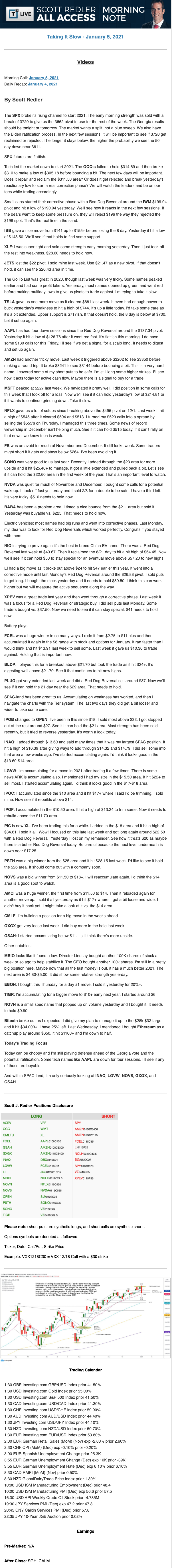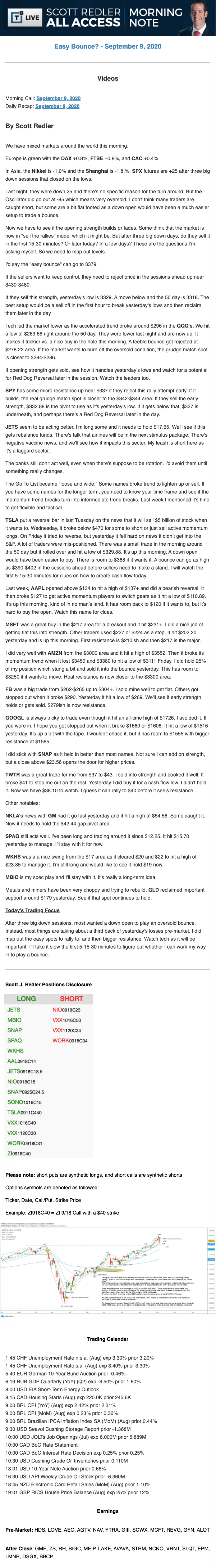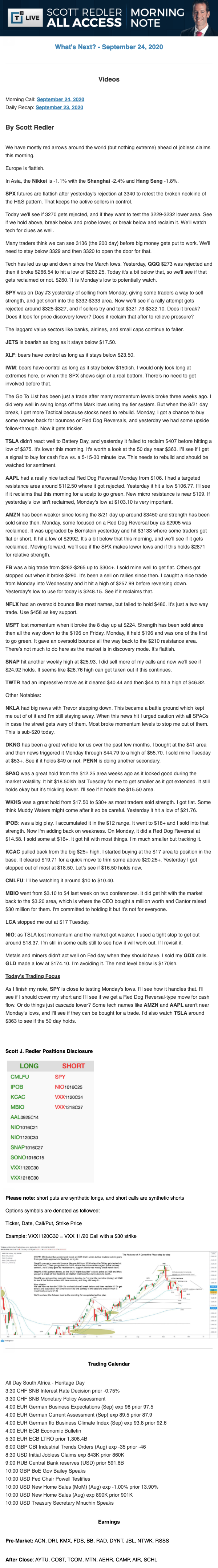 Start every trading day with T3 Live Chief Strategic Officer Scott Redler's complete trading plan.