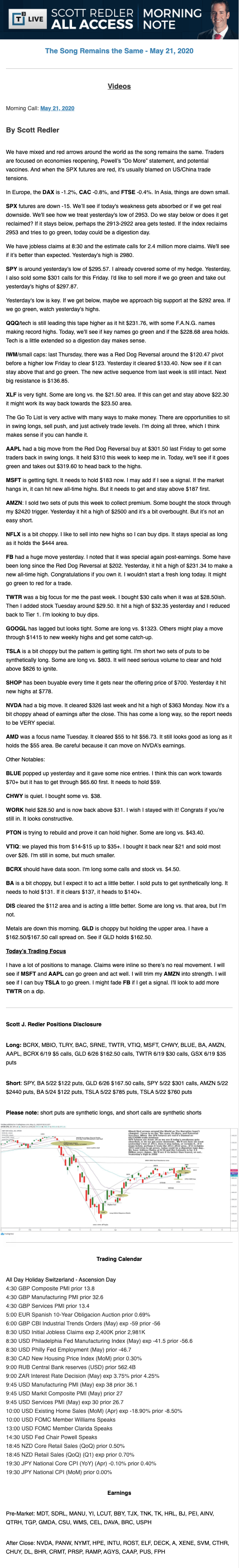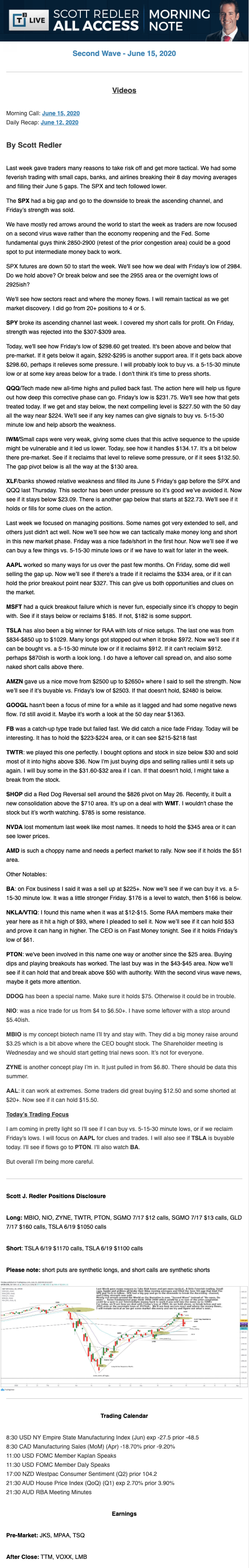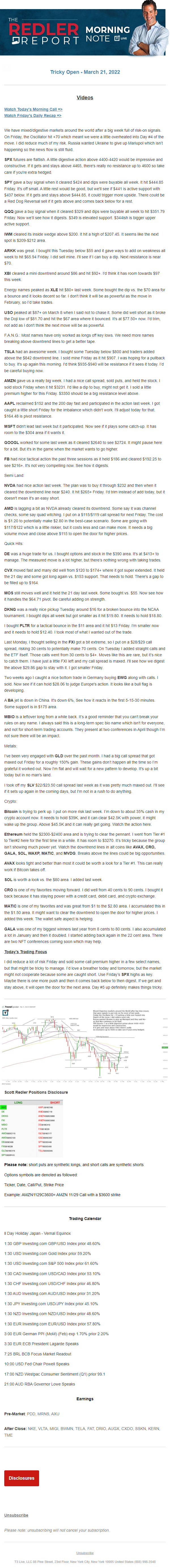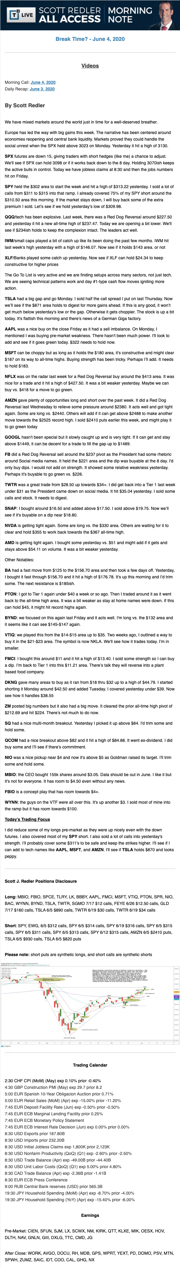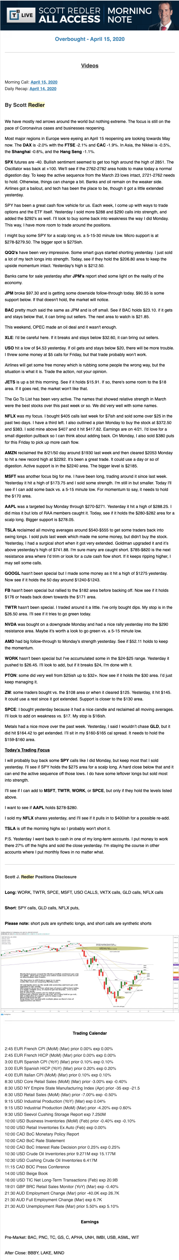 Start every trading day with T3 Live Chief Strategic Officer Scott Redler's complete trading plan.