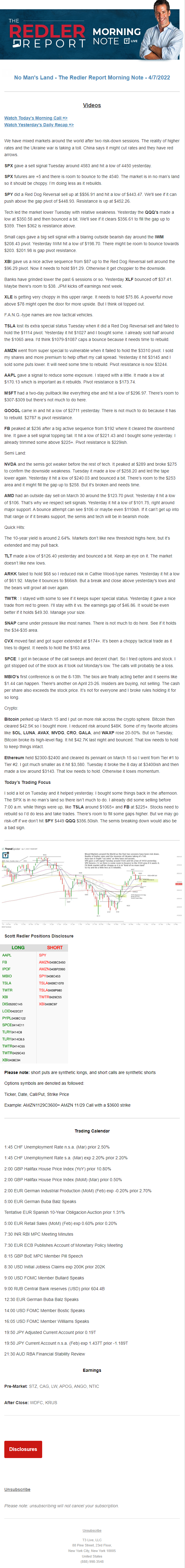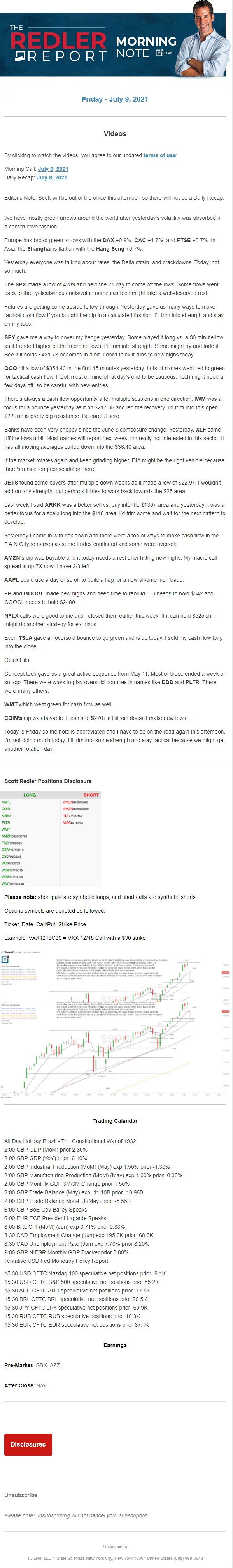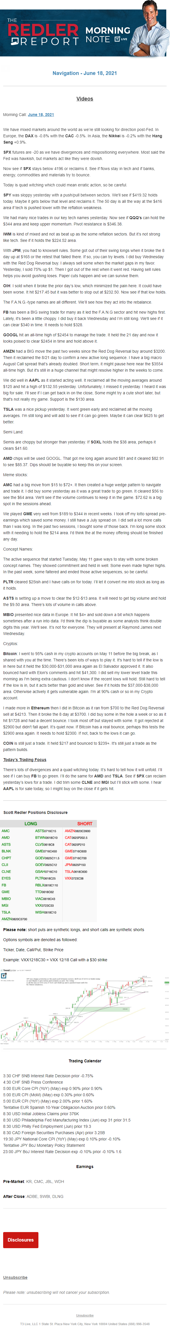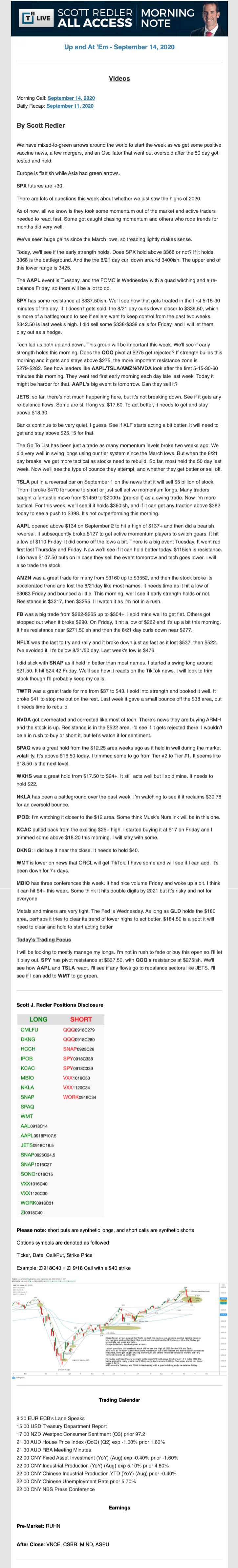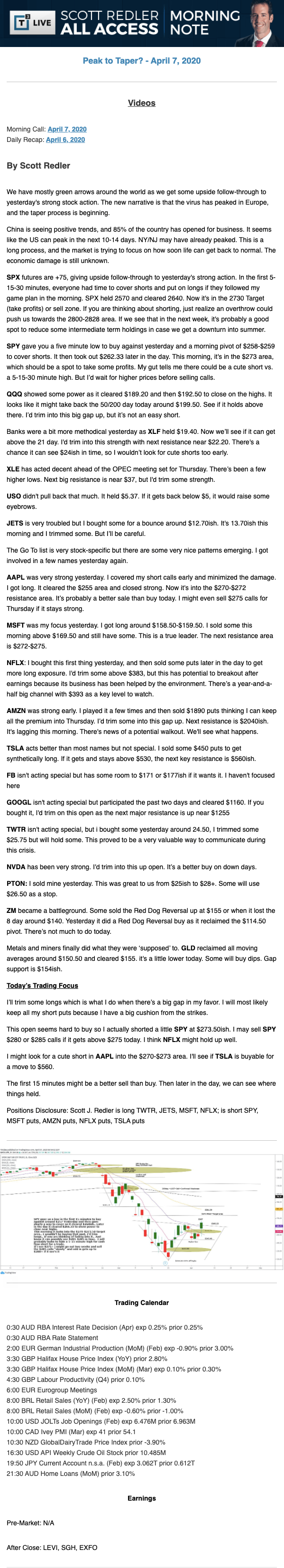 Start every trading day with T3 Live Chief Strategic Officer Scott Redler's complete trading plan.