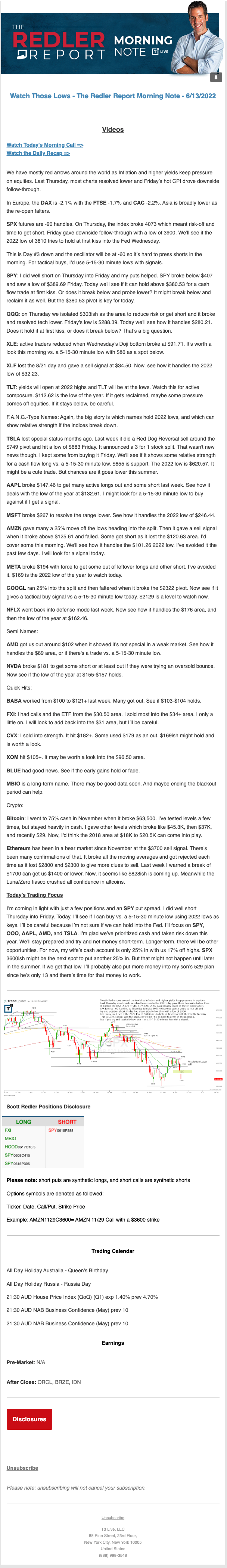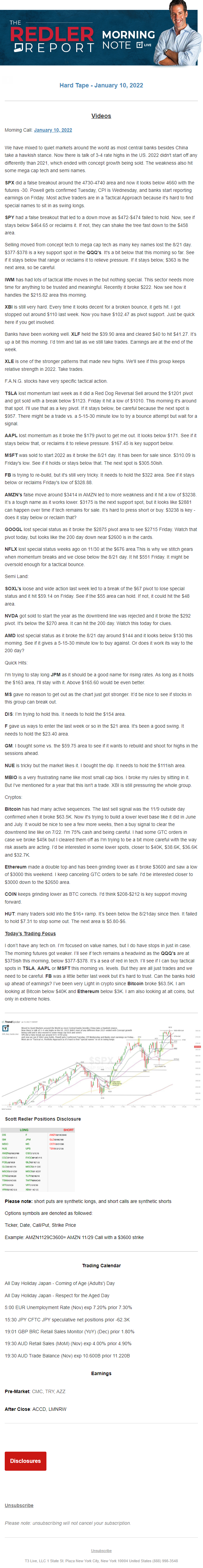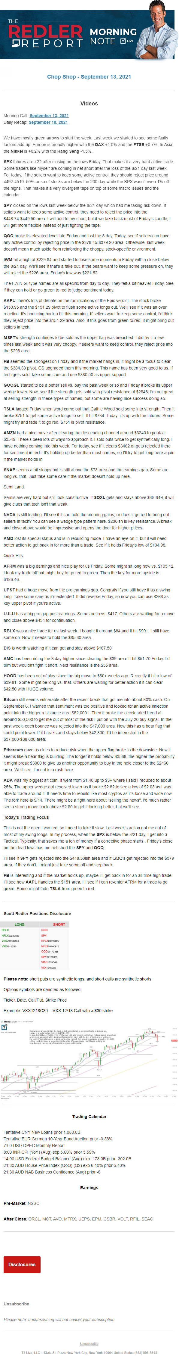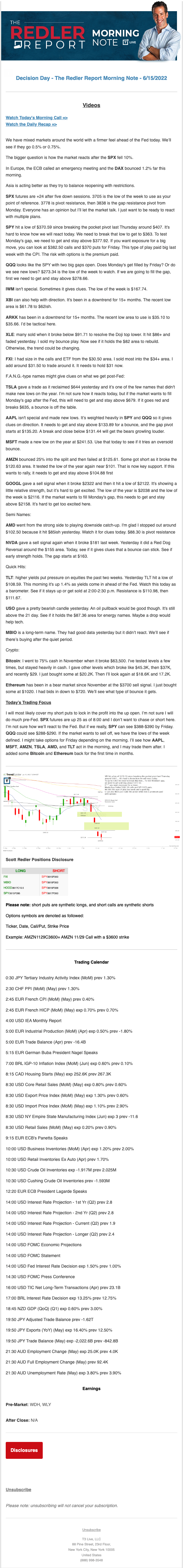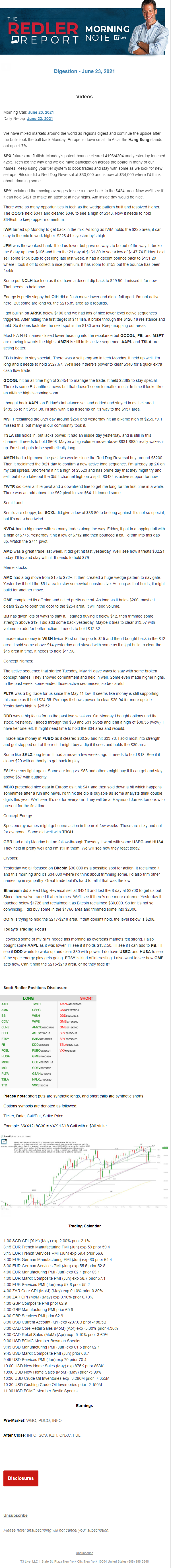 Start every trading day with T3 Live Chief Strategic Officer Scott Redler's complete trading plan.