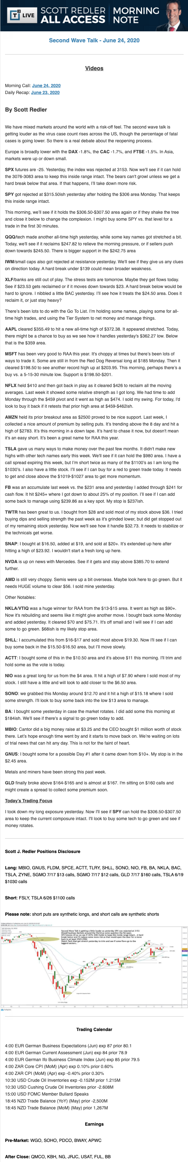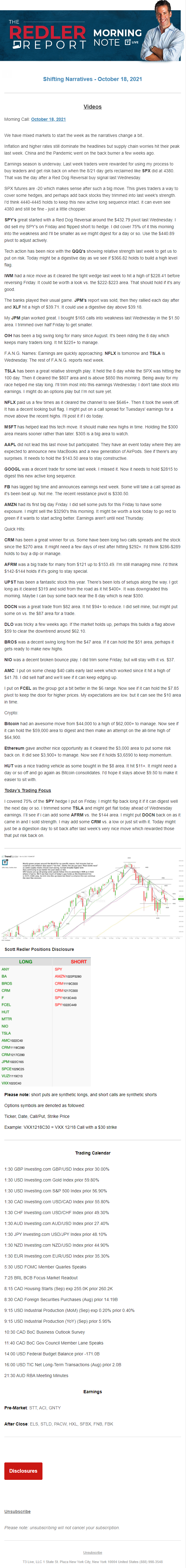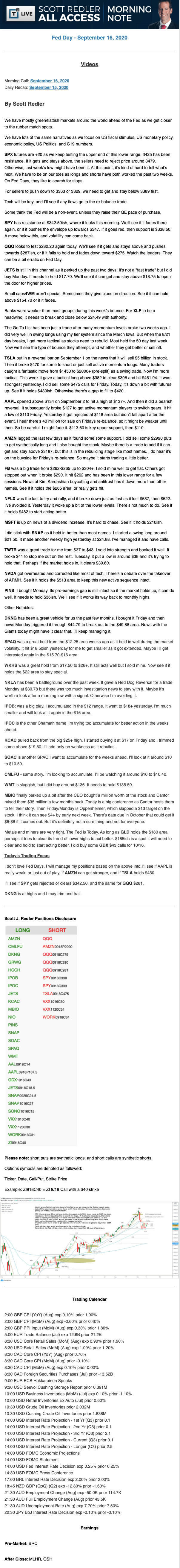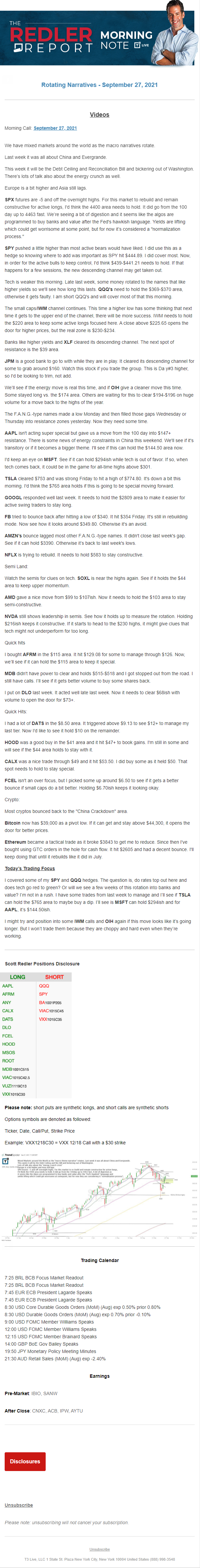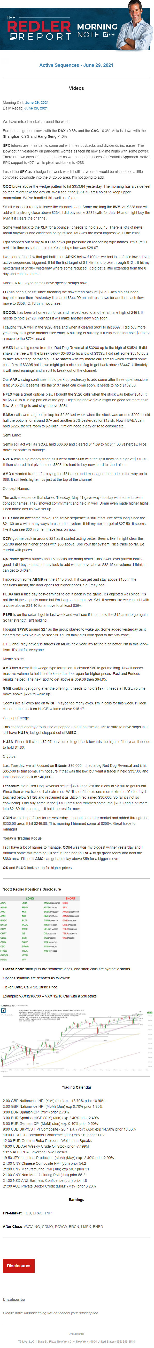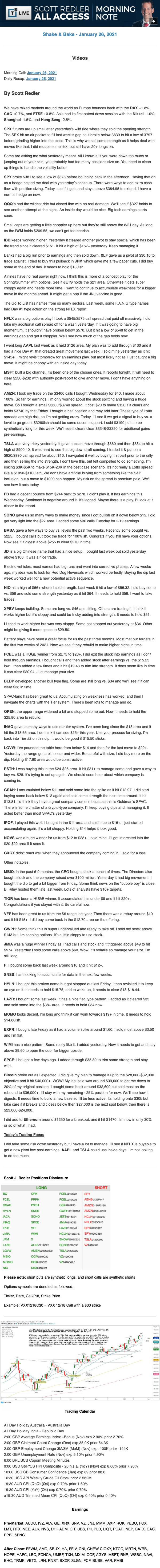 Start every trading day with T3 Live Chief Strategic Officer Scott Redler's complete trading plan.