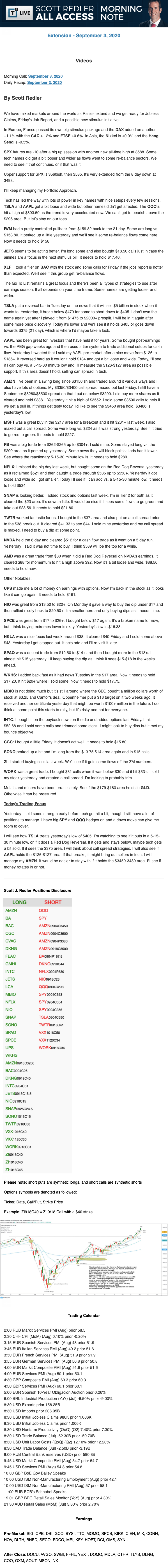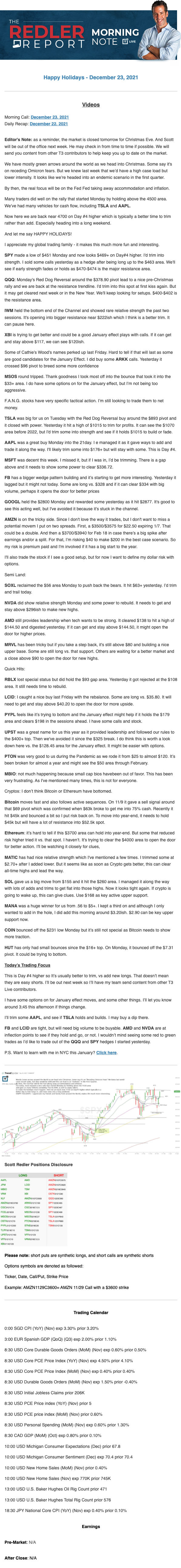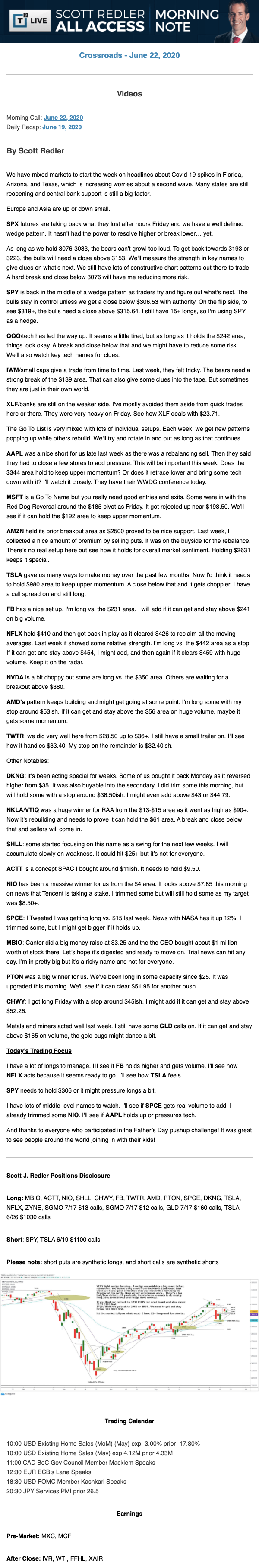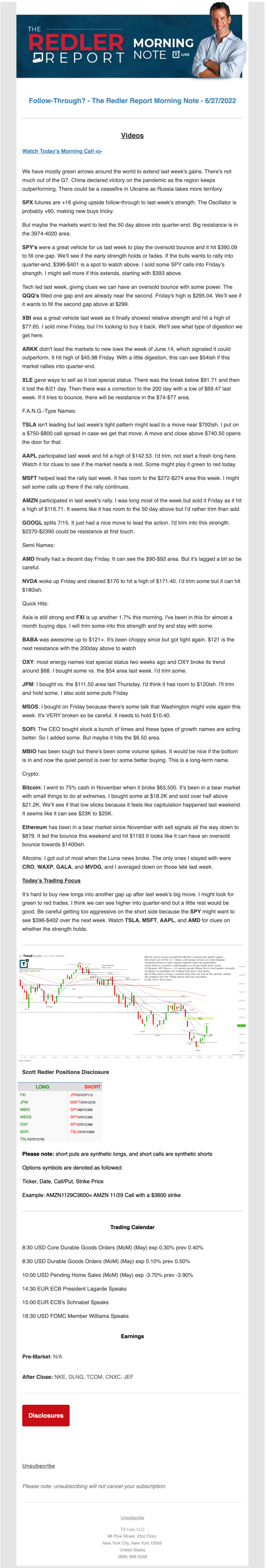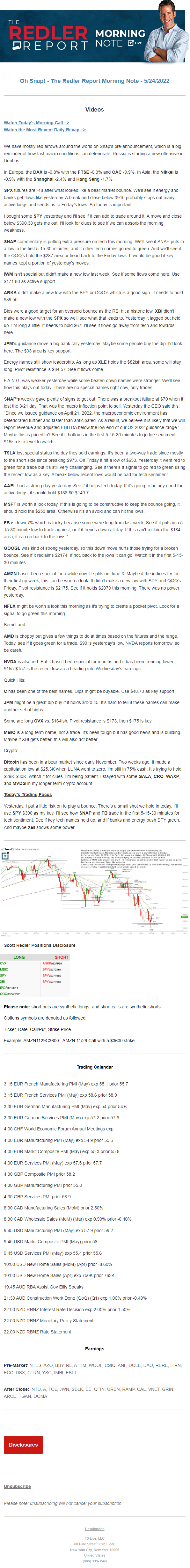 Start every trading day with T3 Live Chief Strategic Officer Scott Redler's complete trading plan.