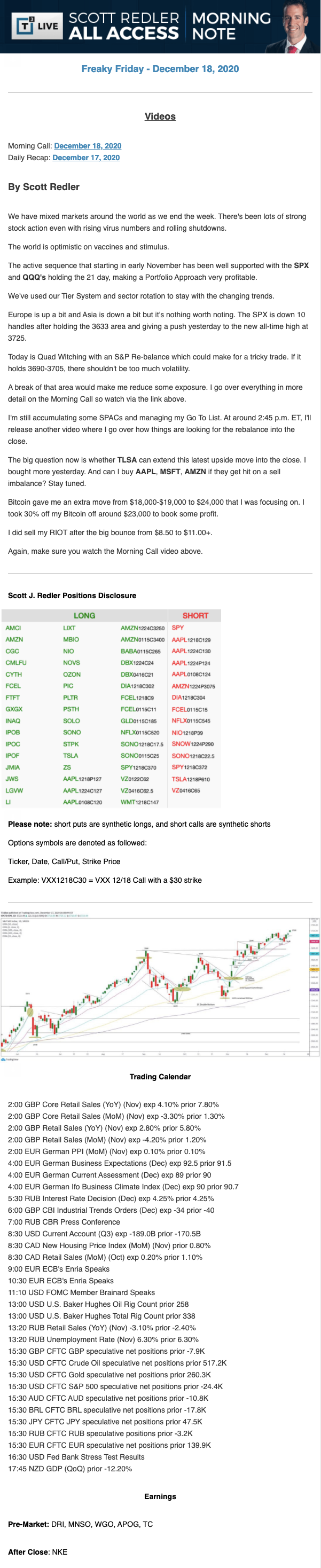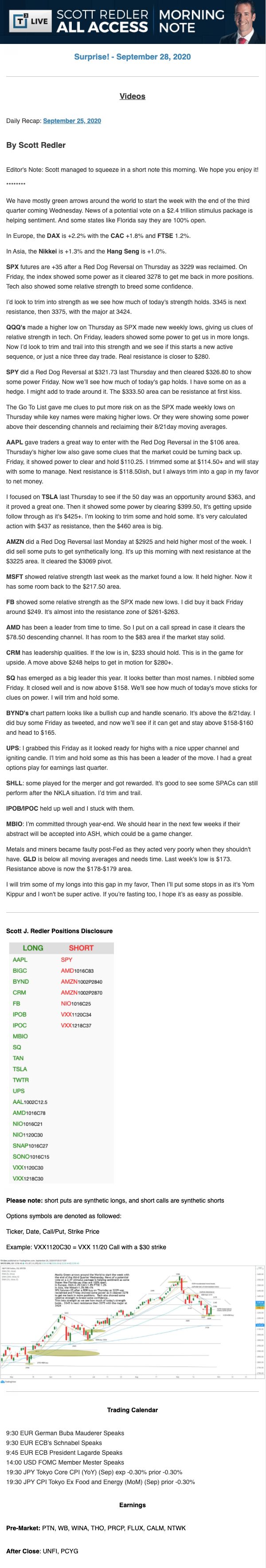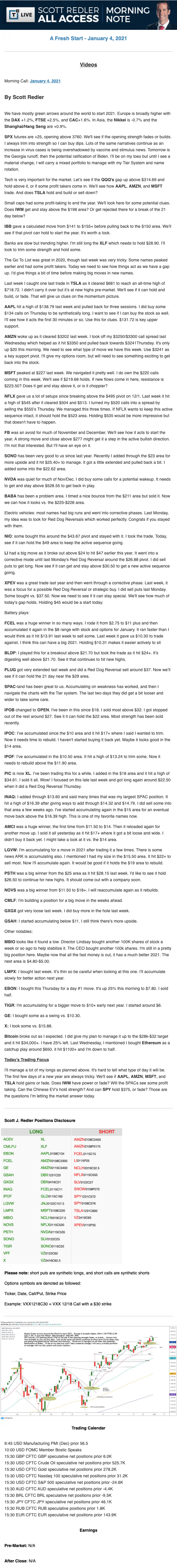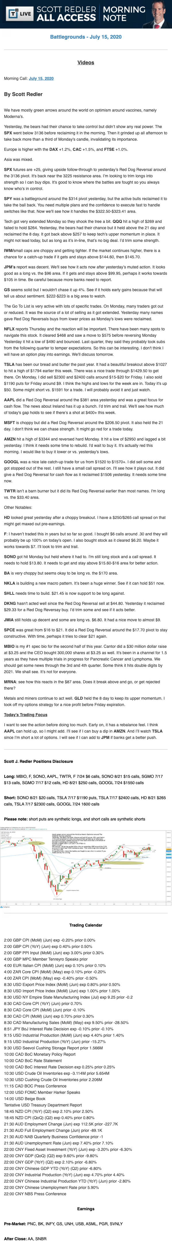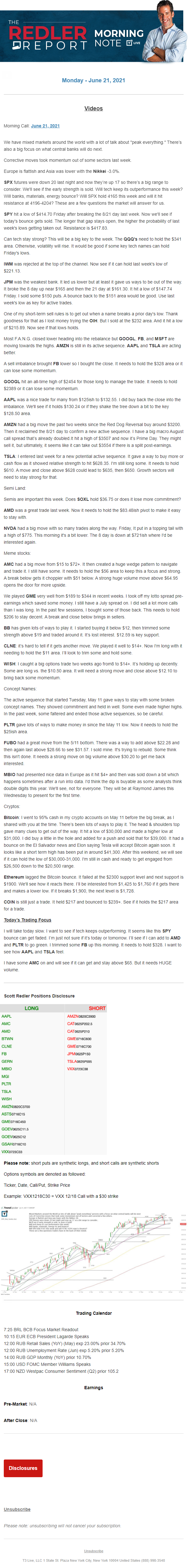 Start every trading day with T3 Live Chief Strategic Officer Scott Redler's complete trading plan.
