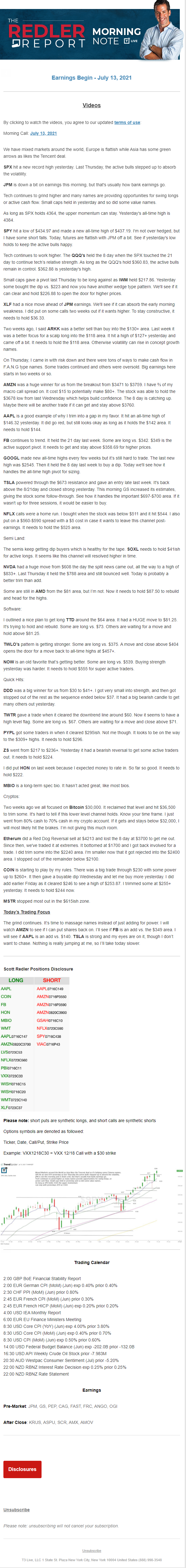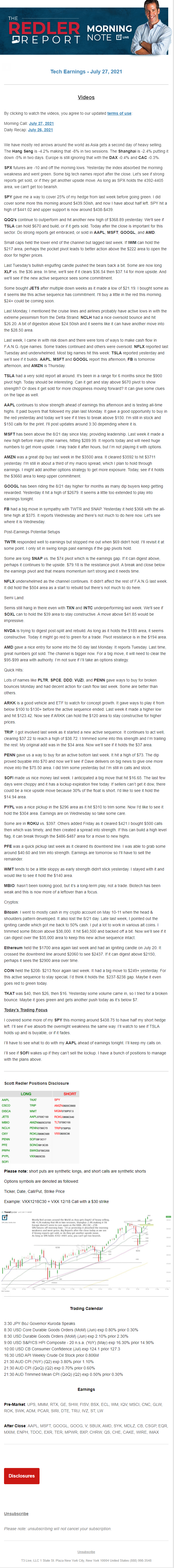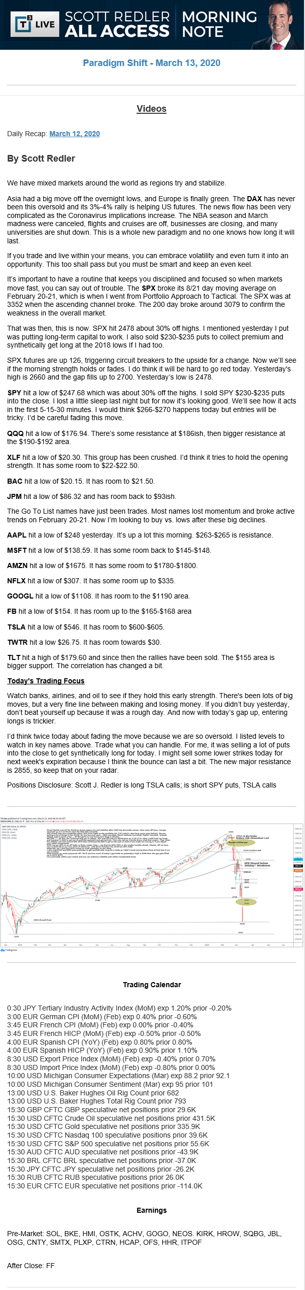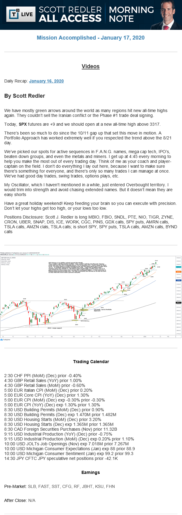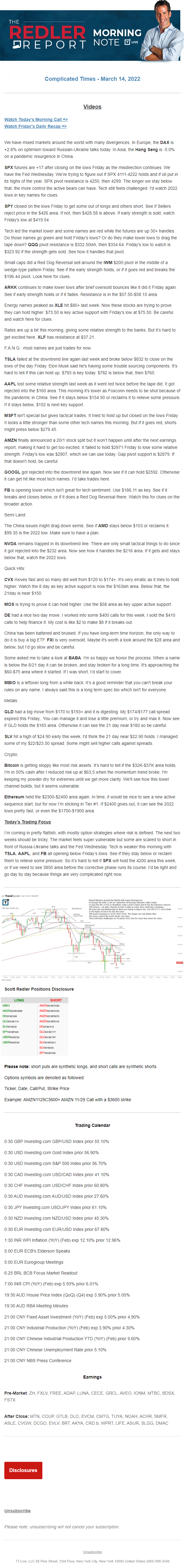 Start every trading day with T3 Live Chief Strategic Officer Scott Redler's complete trading plan.