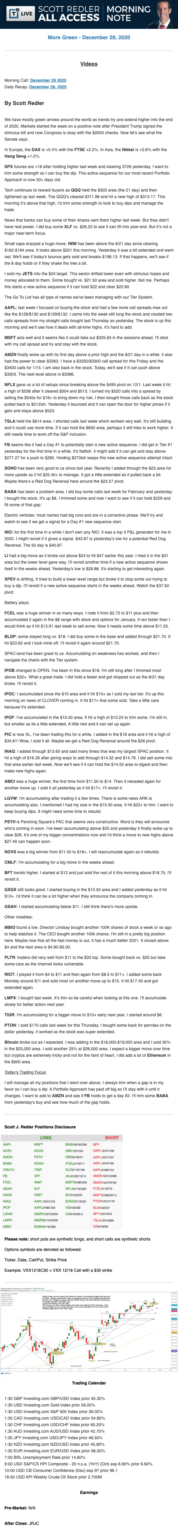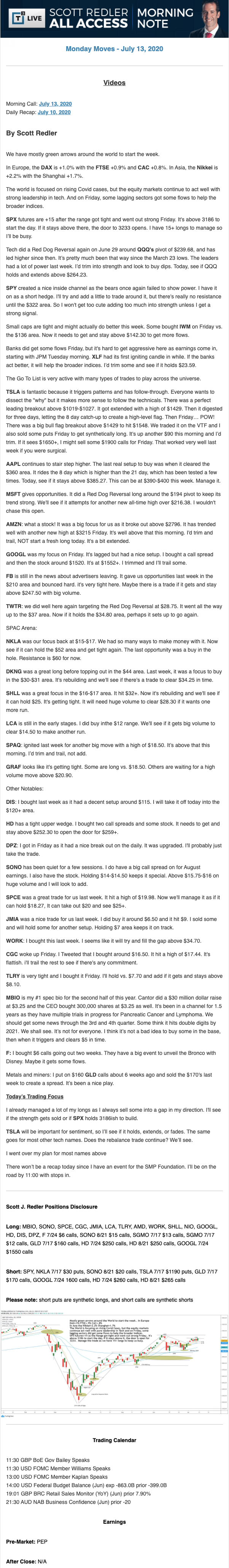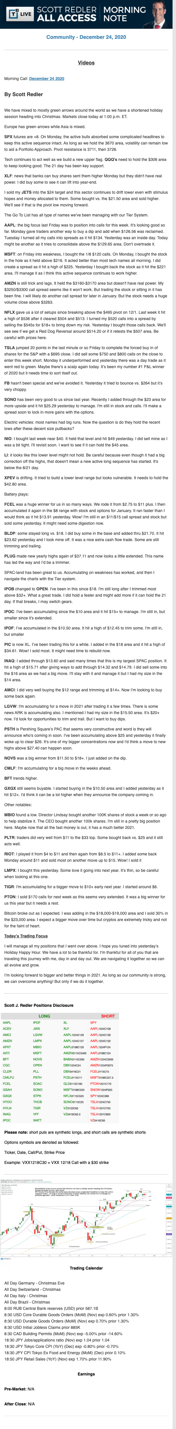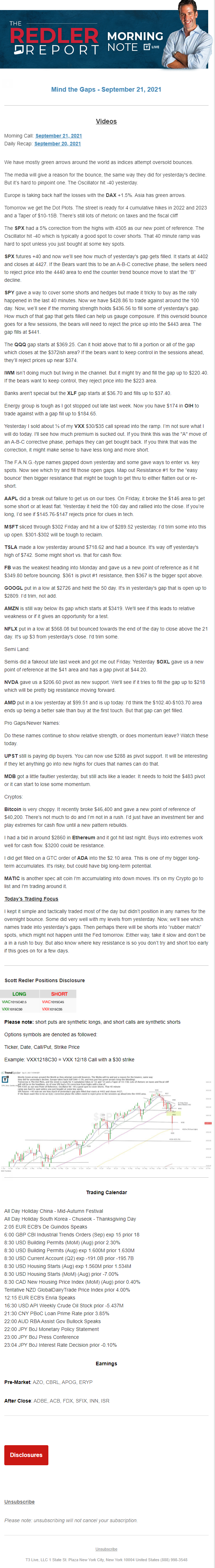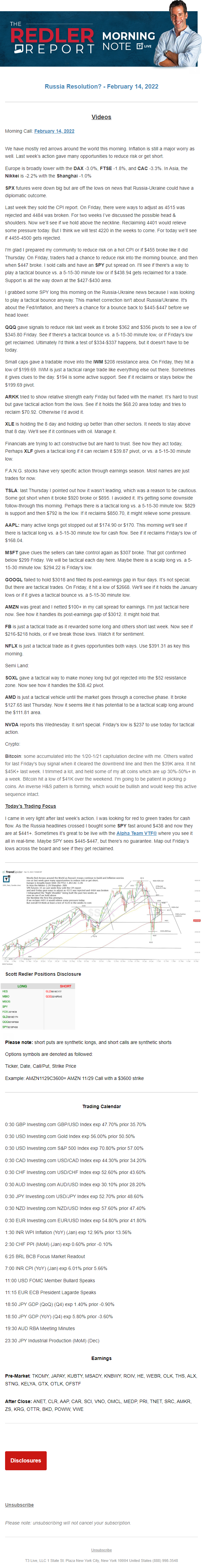 Start every trading day with T3 Live Chief Strategic Officer Scott Redler's complete trading plan.