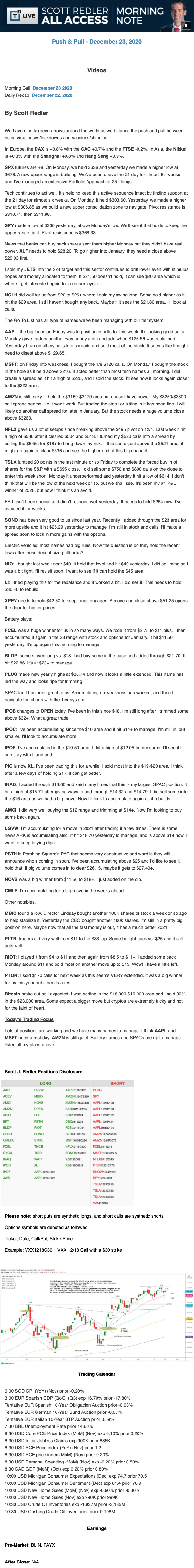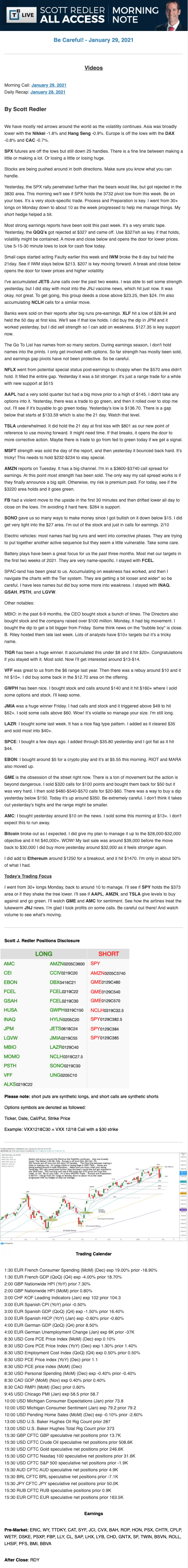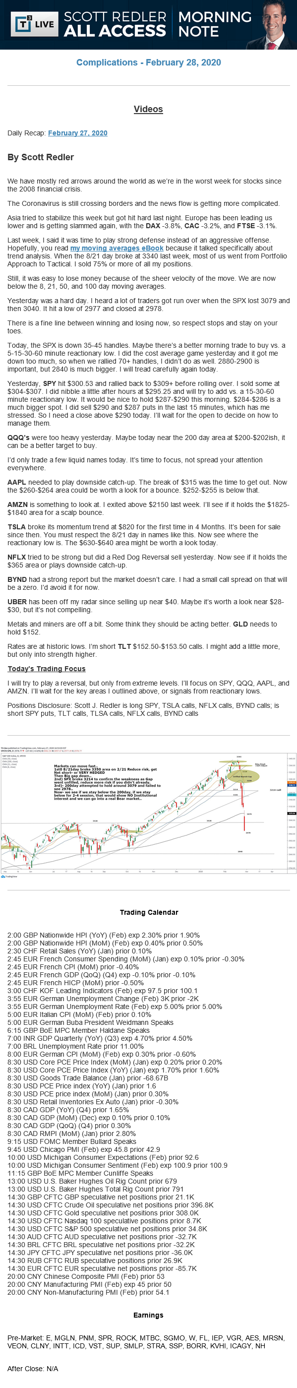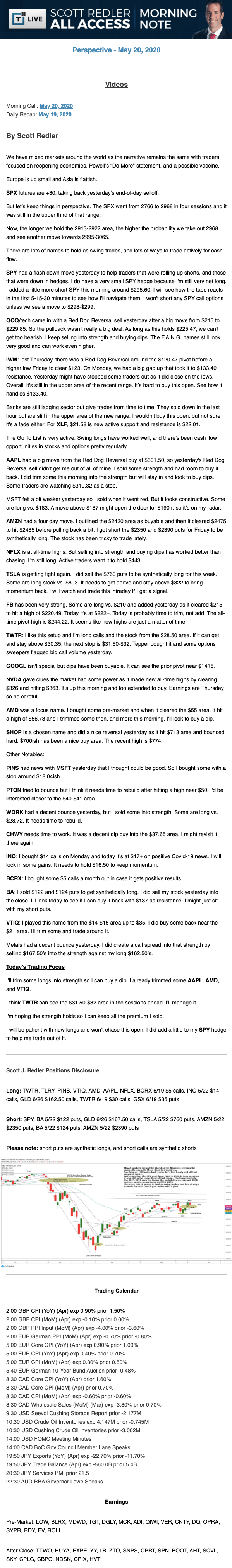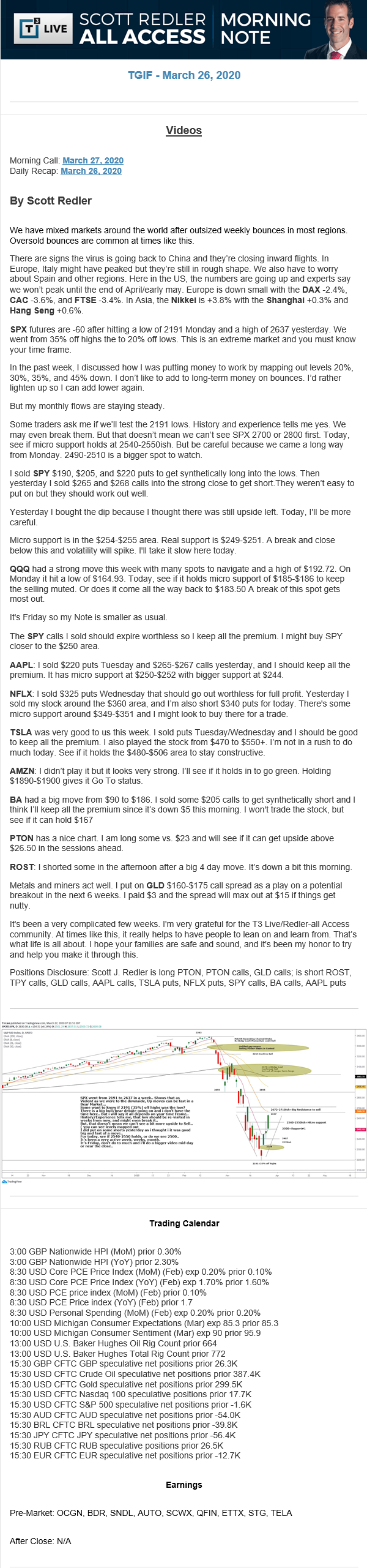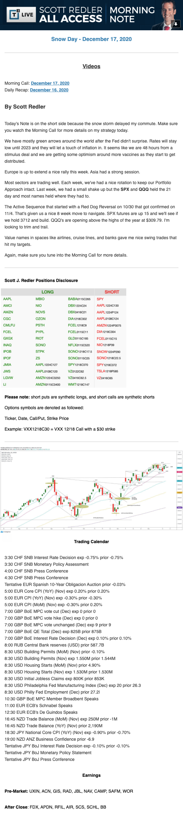 Start every trading day with T3 Live Chief Strategic Officer Scott Redler's complete trading plan.