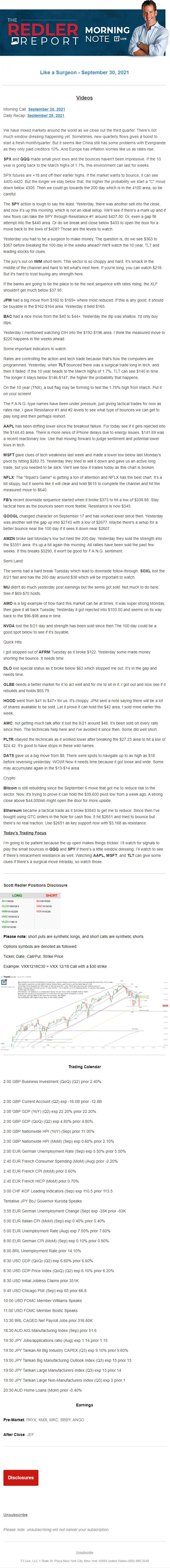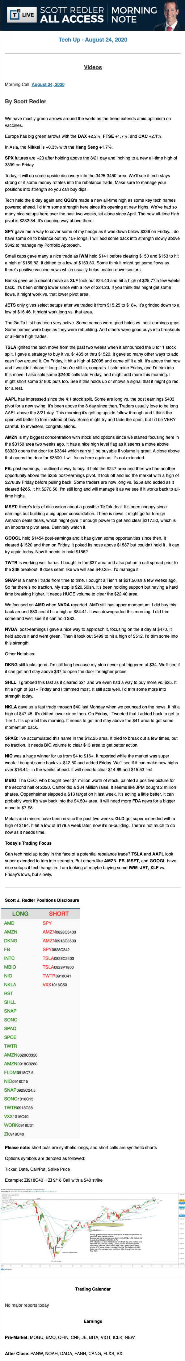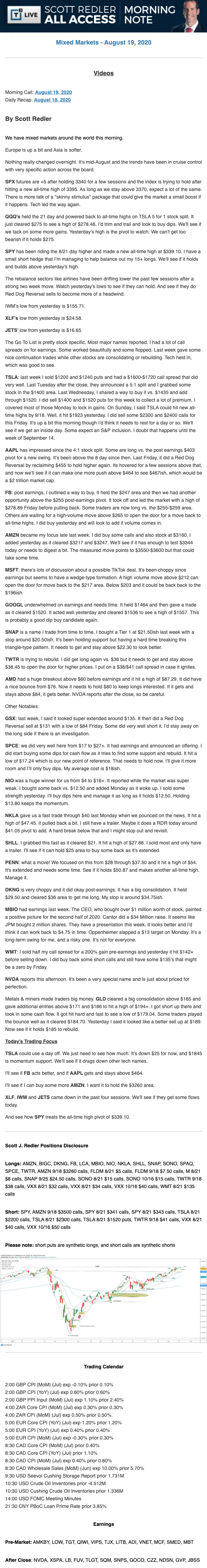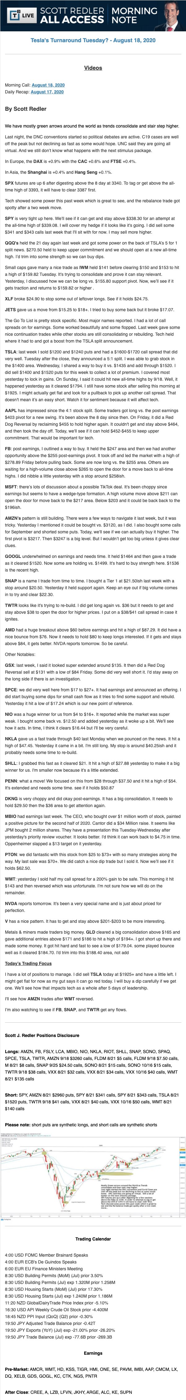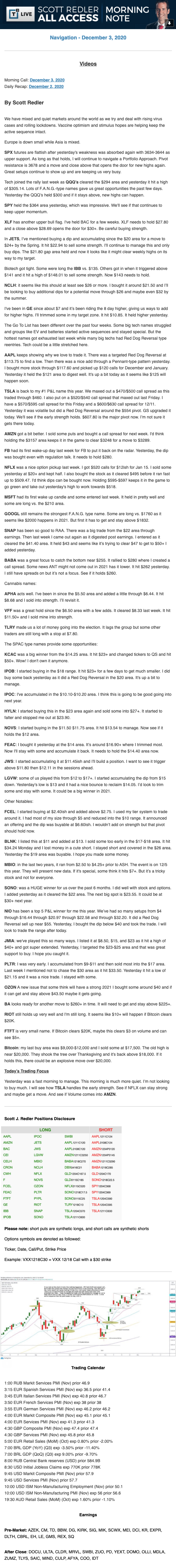 Start every trading day with T3 Live Chief Strategic Officer Scott Redler's complete trading plan.