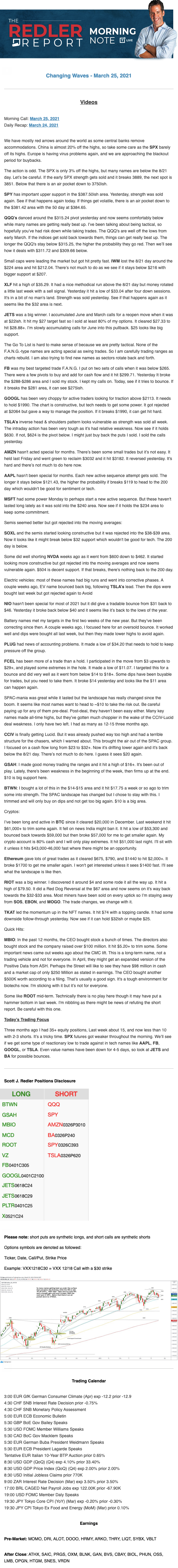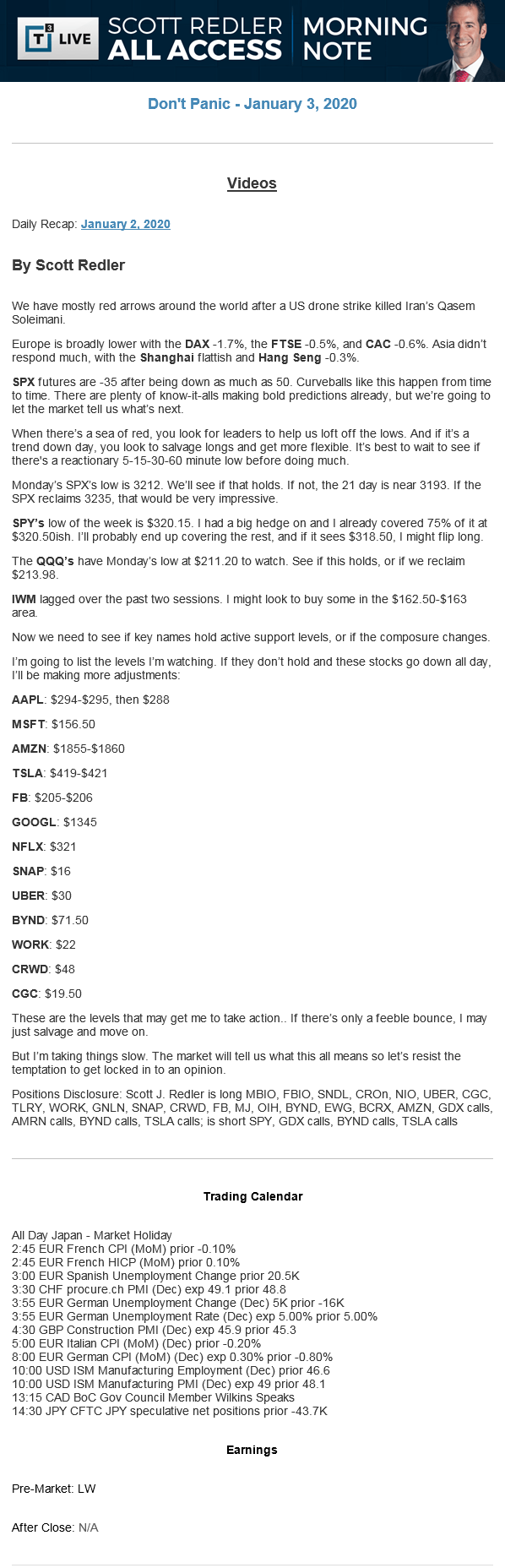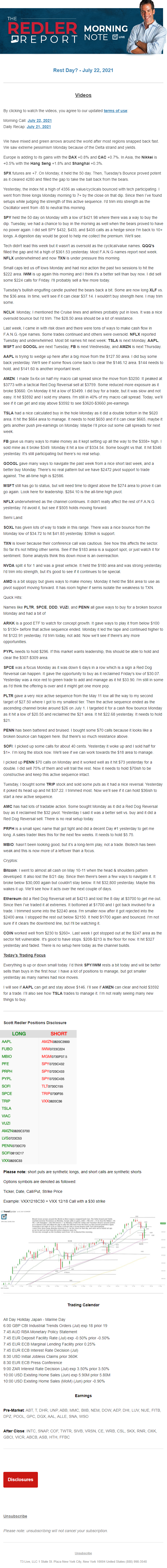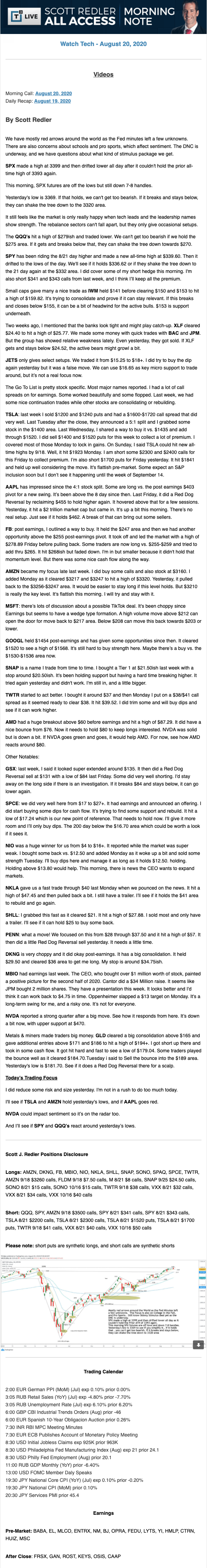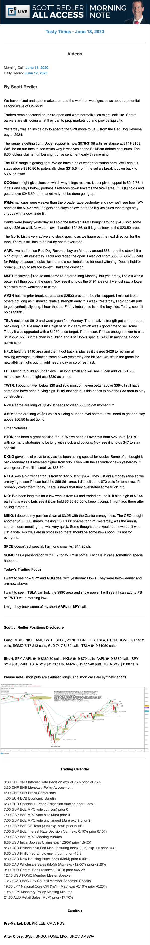 Start every trading day with T3 Live Chief Strategic Officer Scott Redler's complete trading plan.