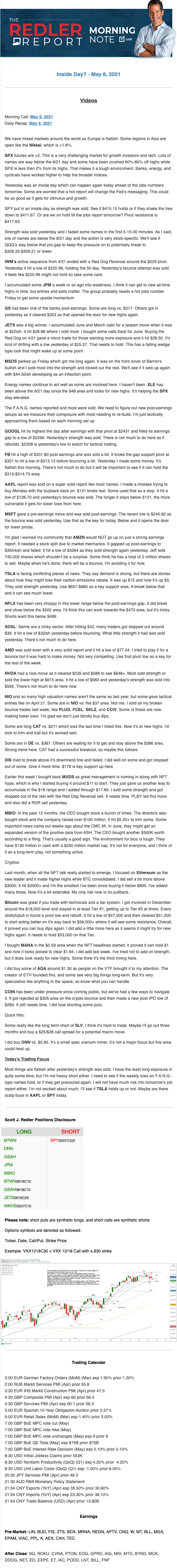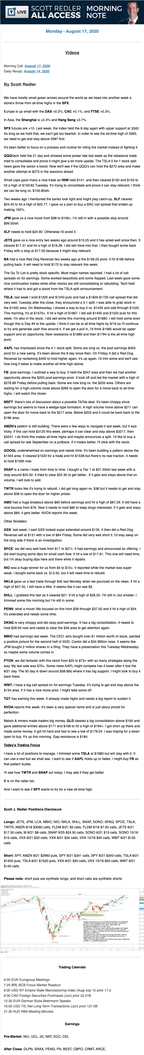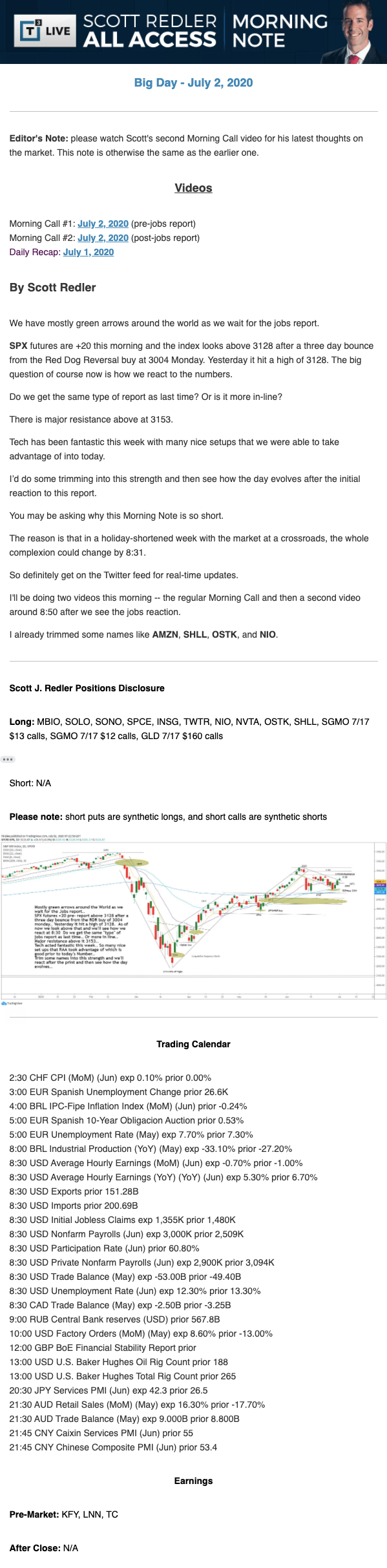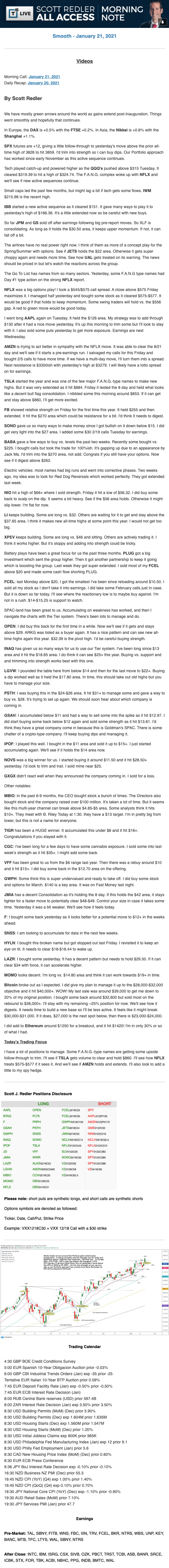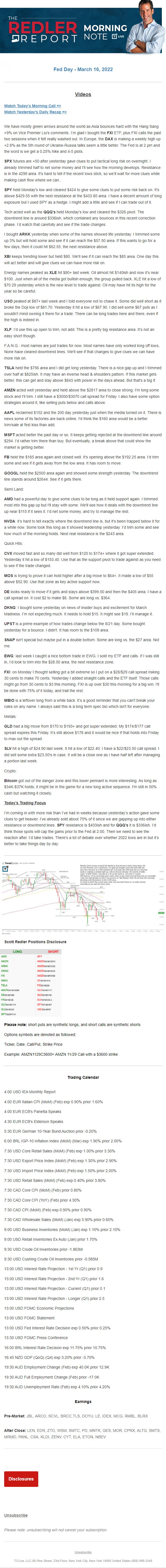 Start every trading day with T3 Live Chief Strategic Officer Scott Redler's complete trading plan.