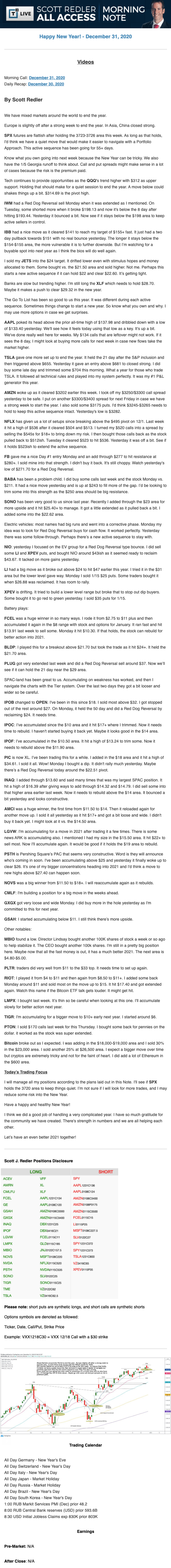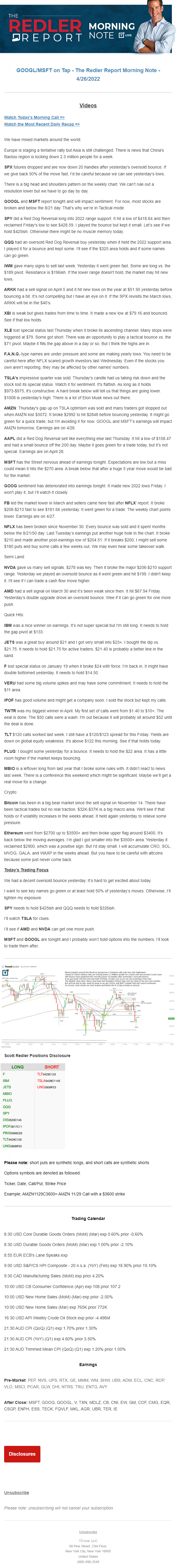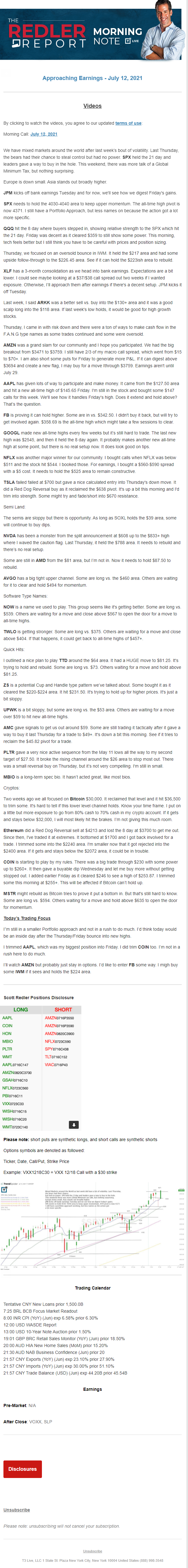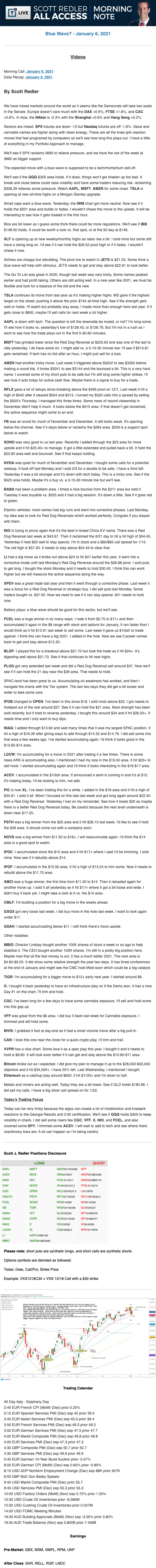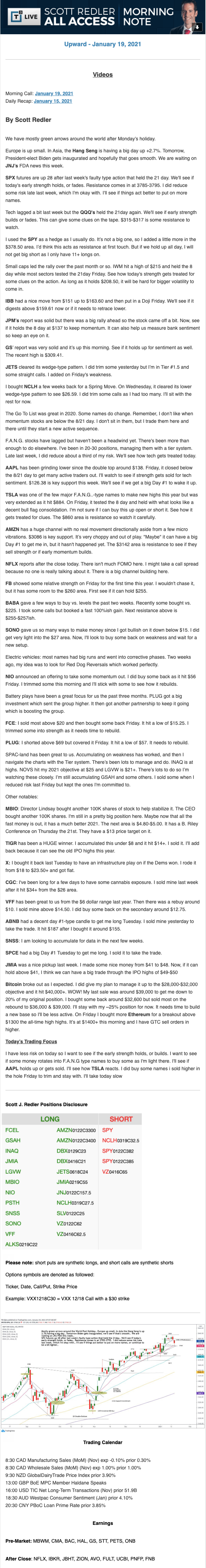 Start every trading day with T3 Live Chief Strategic Officer Scott Redler's complete trading plan.