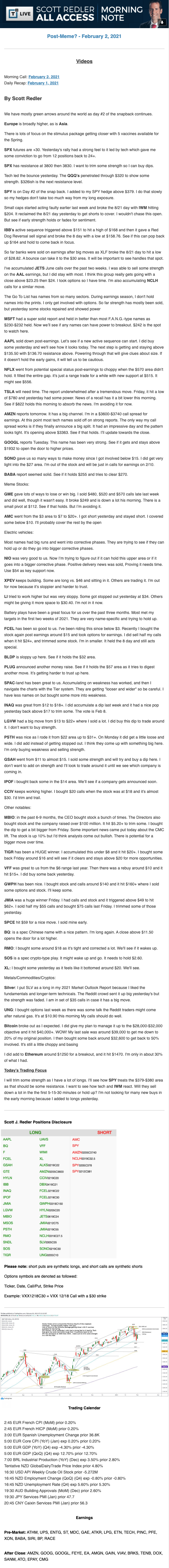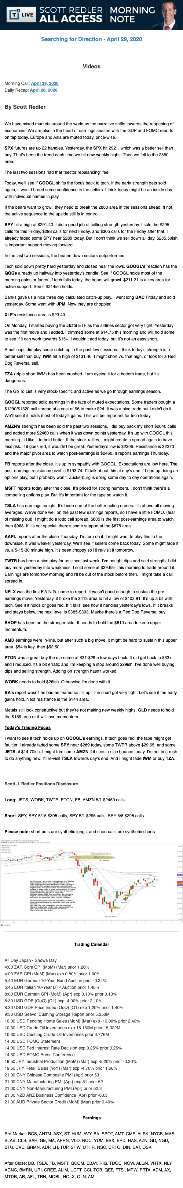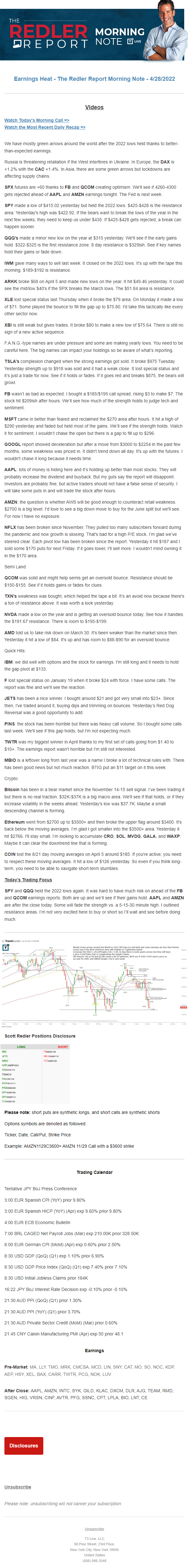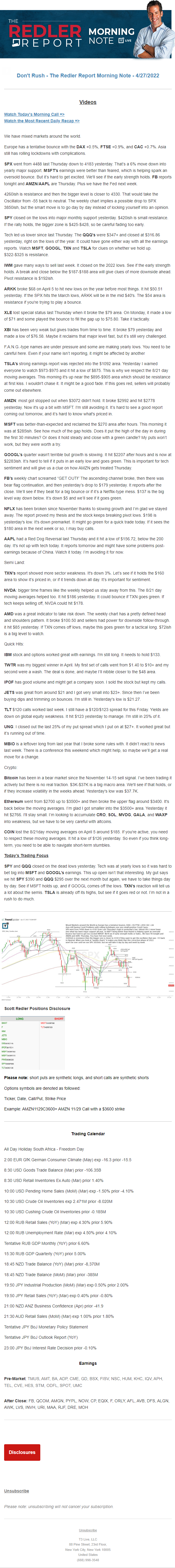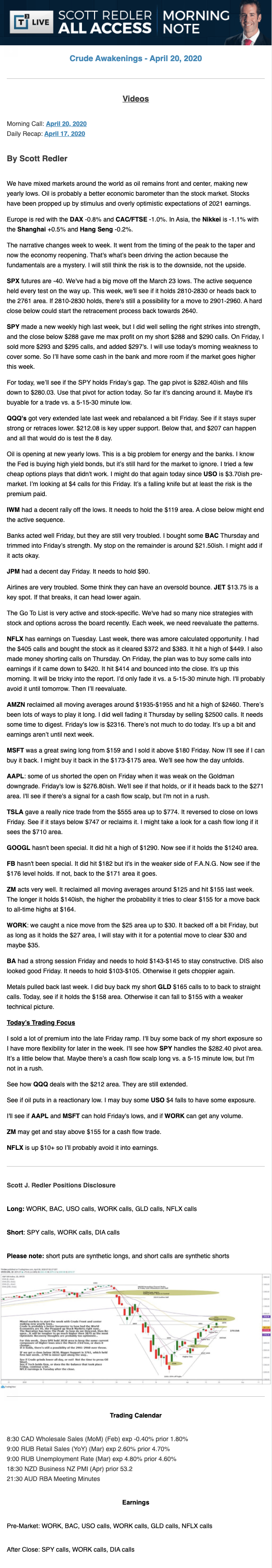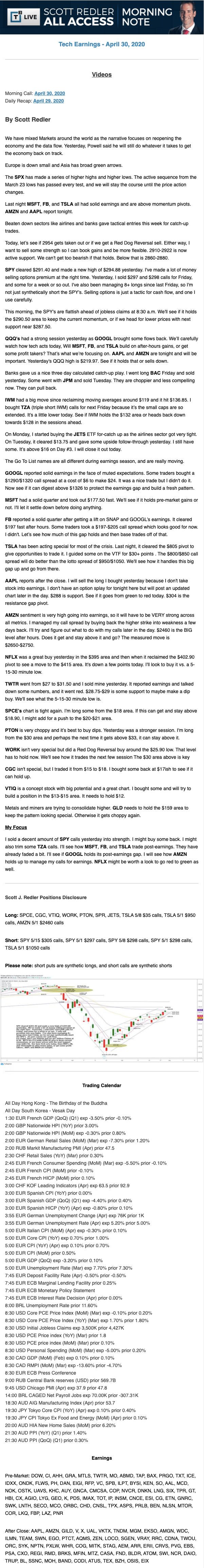 Start every trading day with T3 Live Chief Strategic Officer Scott Redler's complete trading plan.