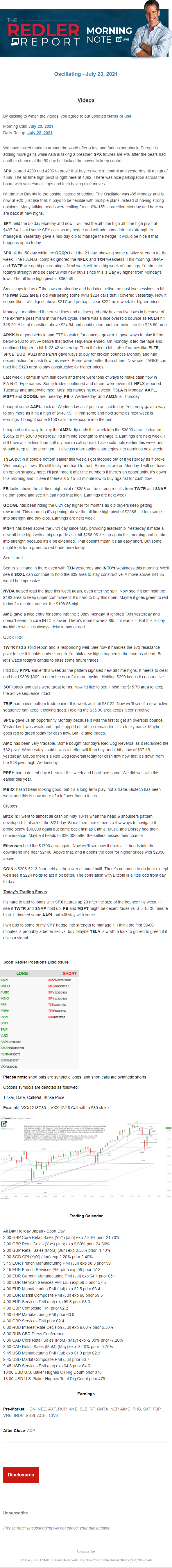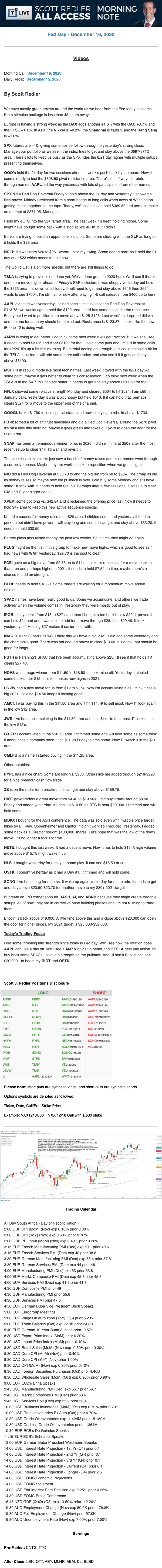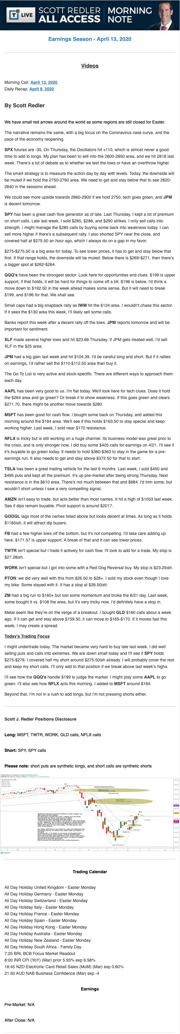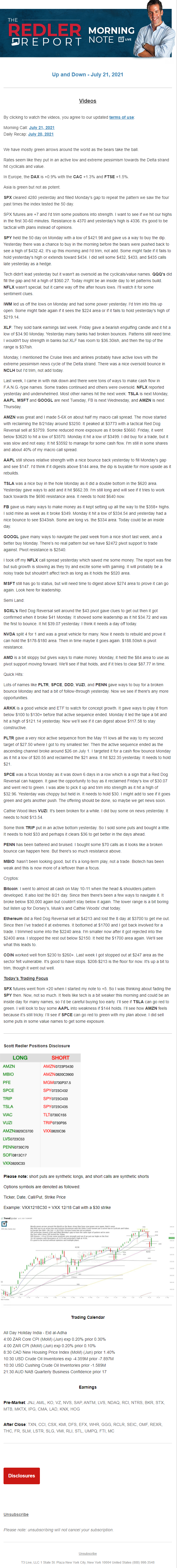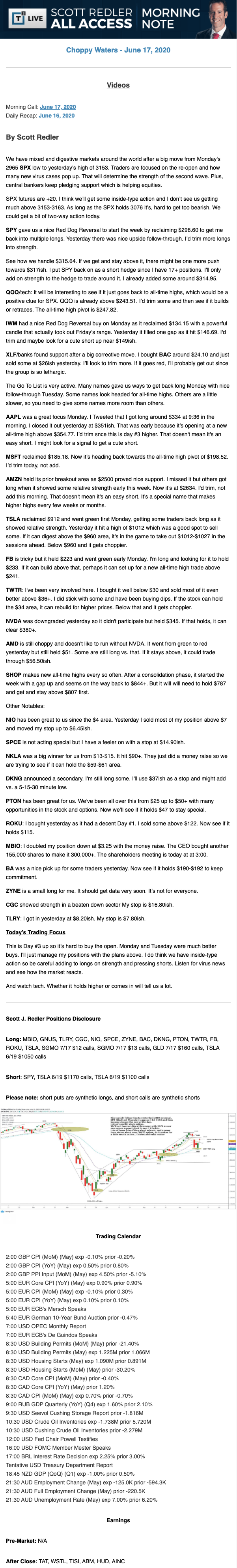 Start every trading day with T3 Live Chief Strategic Officer Scott Redler's complete trading plan.