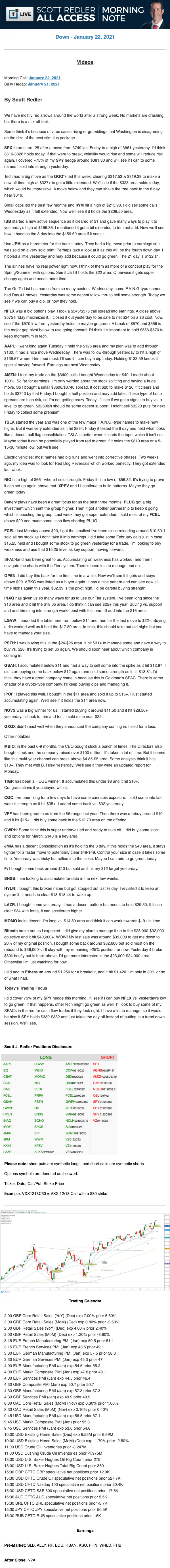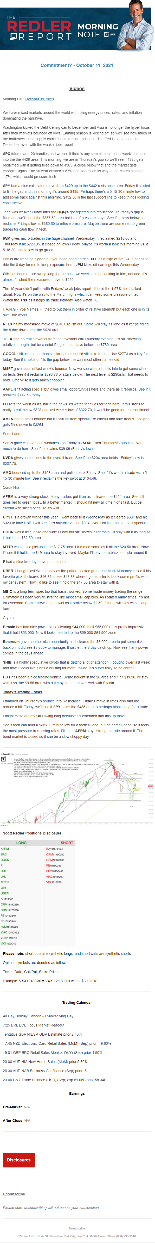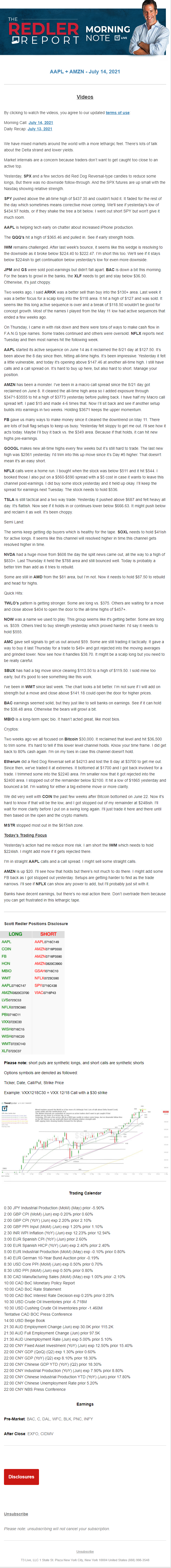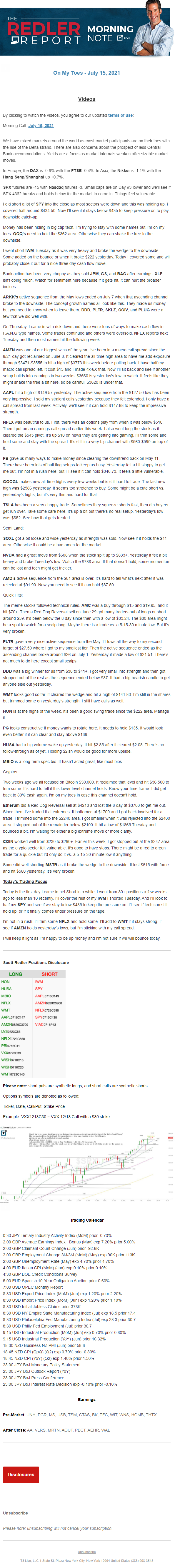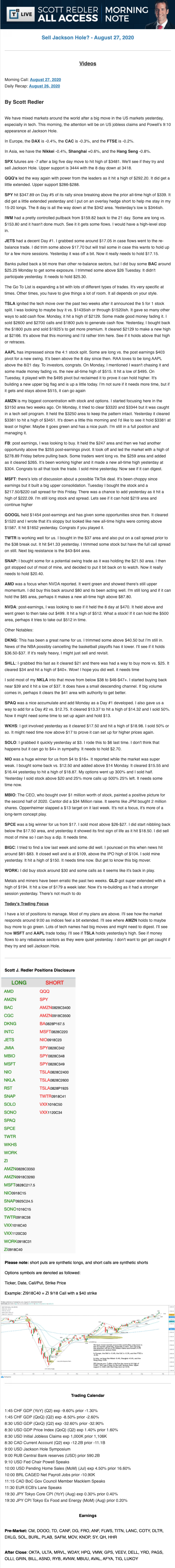 Start every trading day with T3 Live Chief Strategic Officer Scott Redler's complete trading plan.
