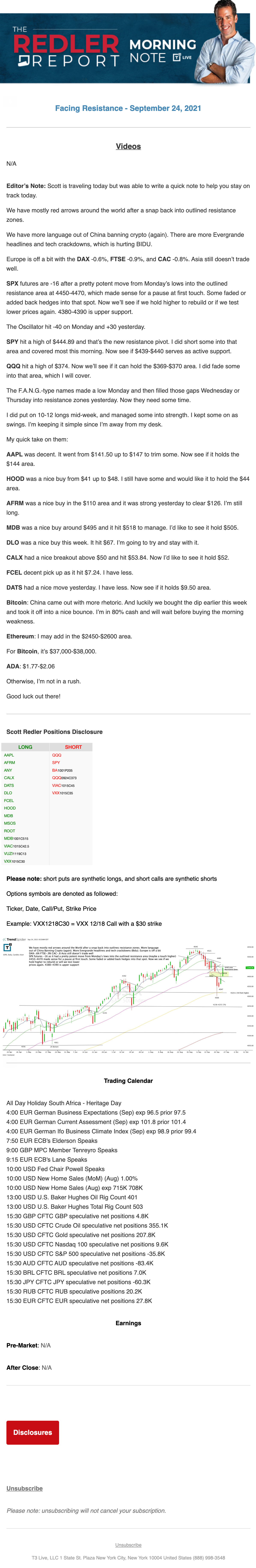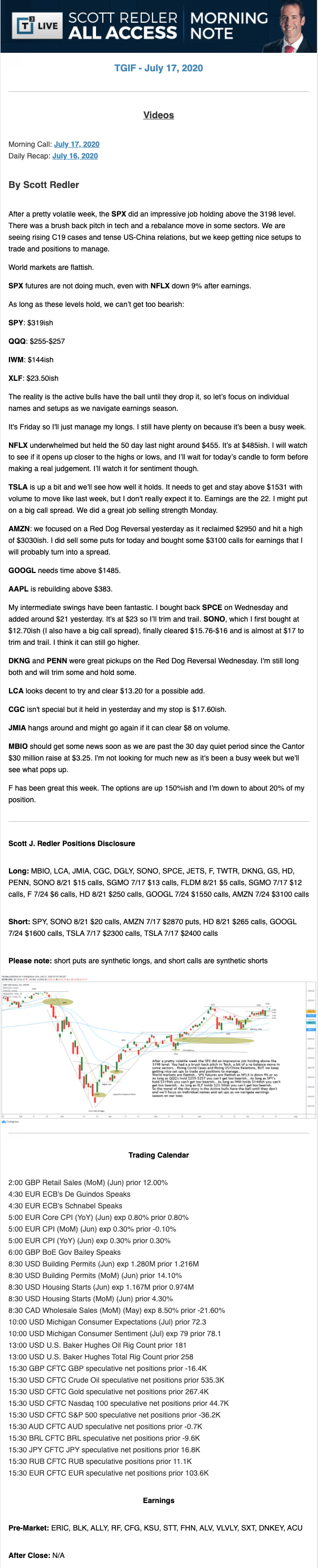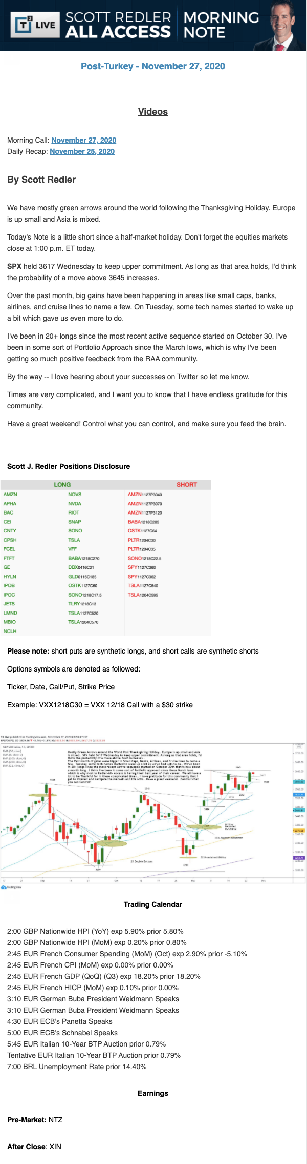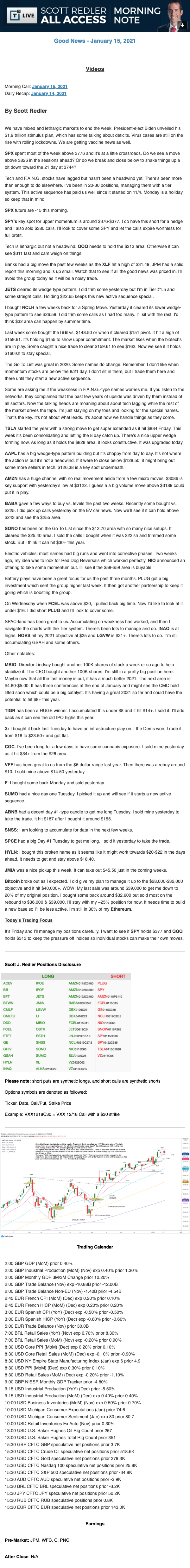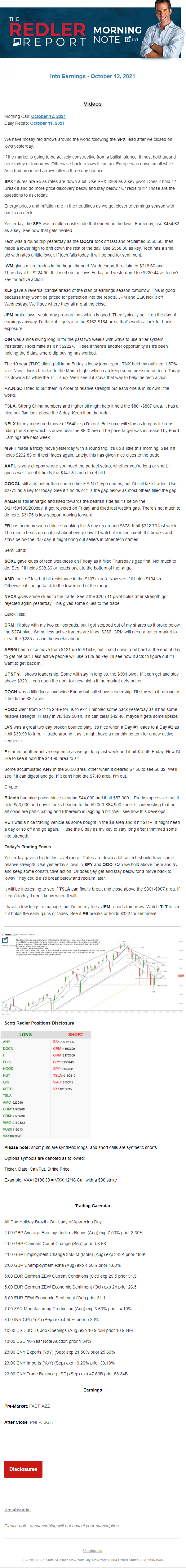 Start every trading day with T3 Live Chief Strategic Officer Scott Redler's complete trading plan.