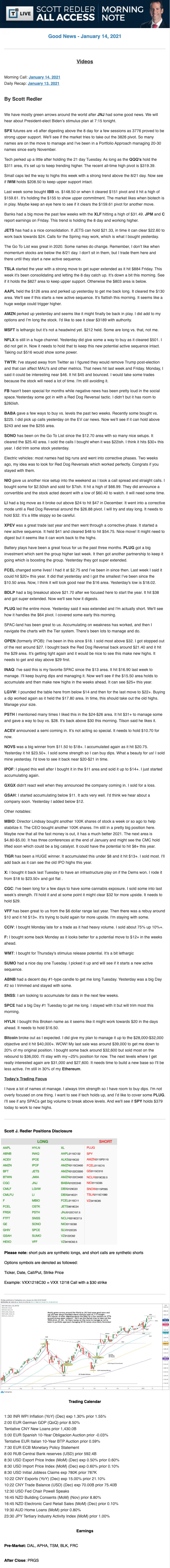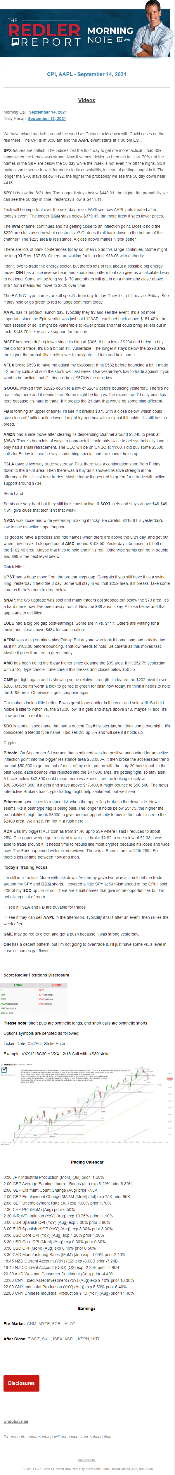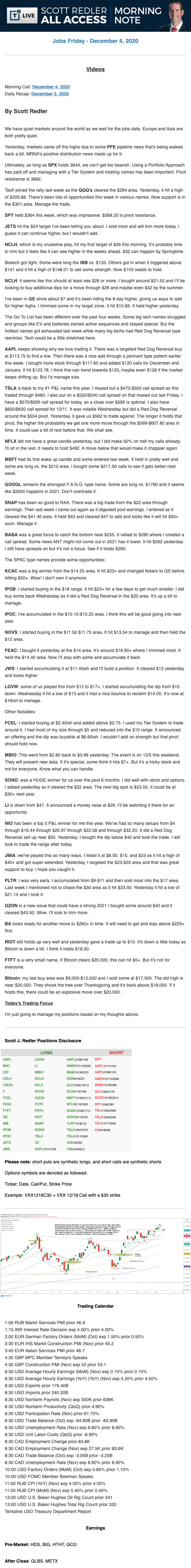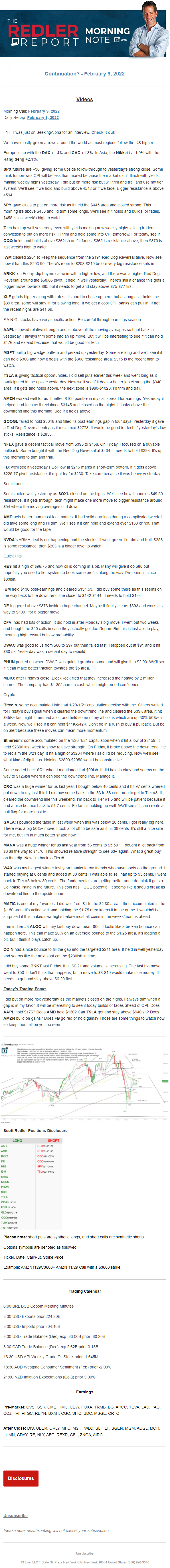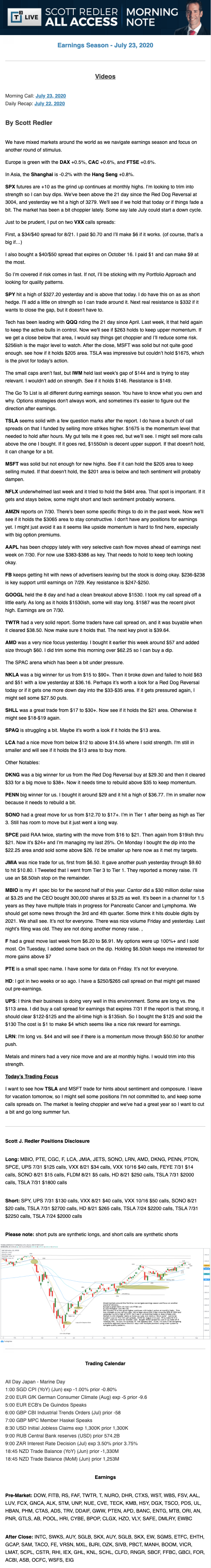 Start every trading day with T3 Live Chief Strategic Officer Scott Redler's complete trading plan.