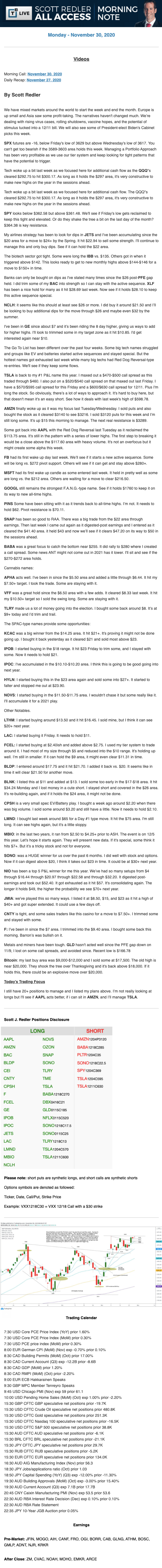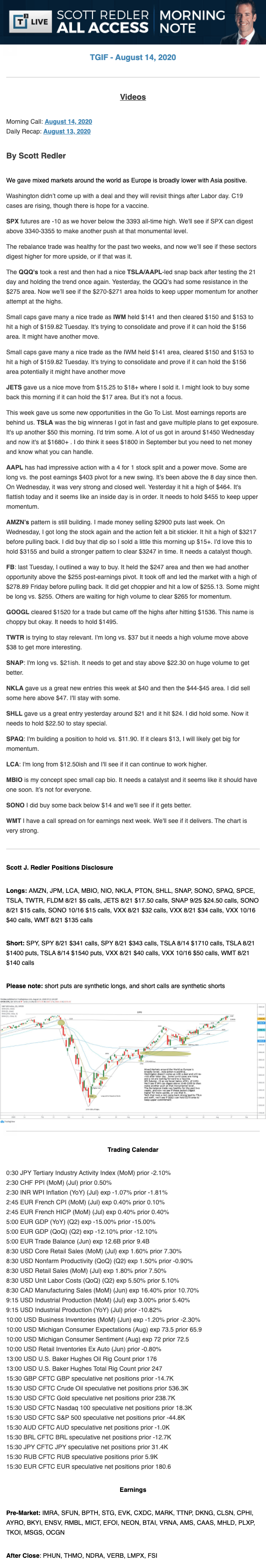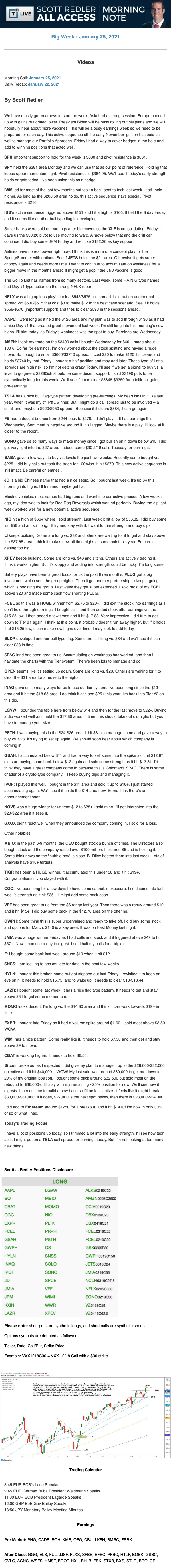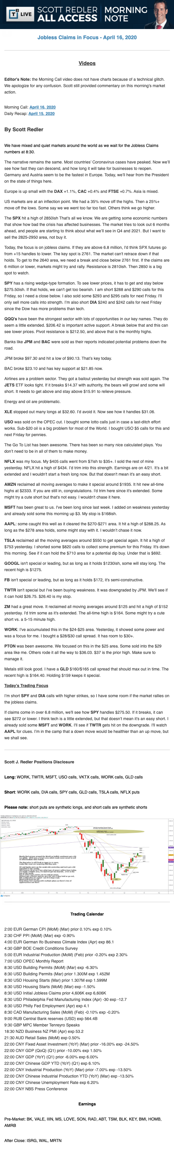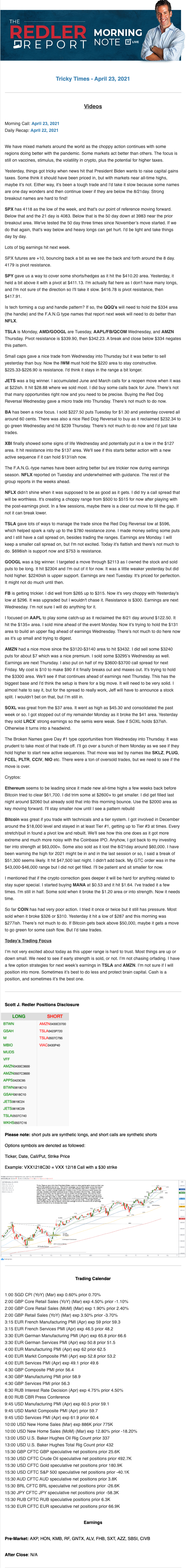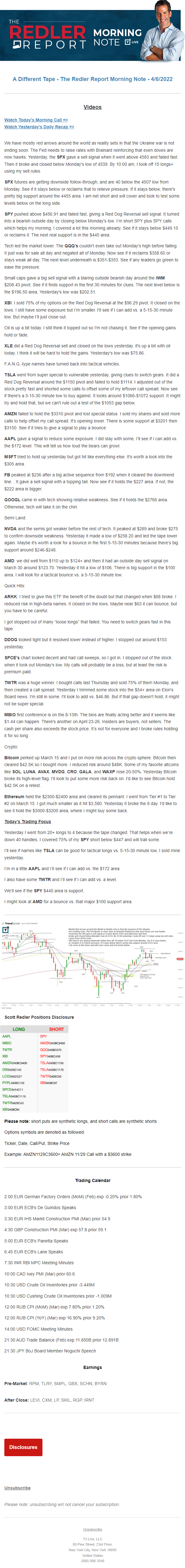 Start every trading day with T3 Live Chief Strategic Officer Scott Redler's complete trading plan.