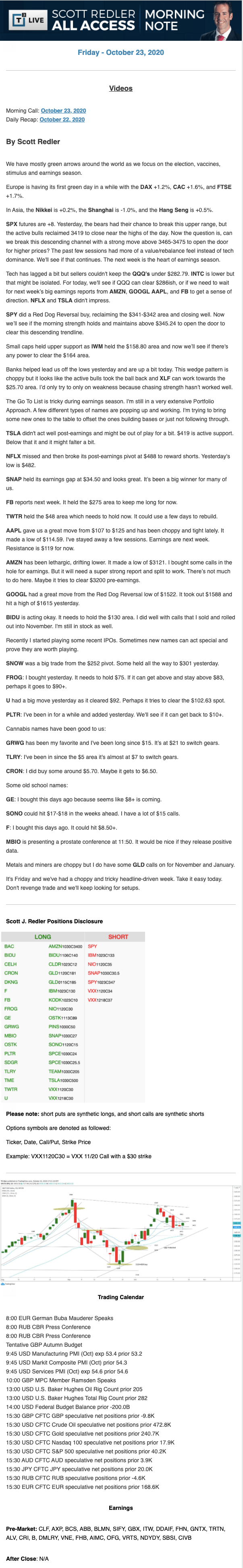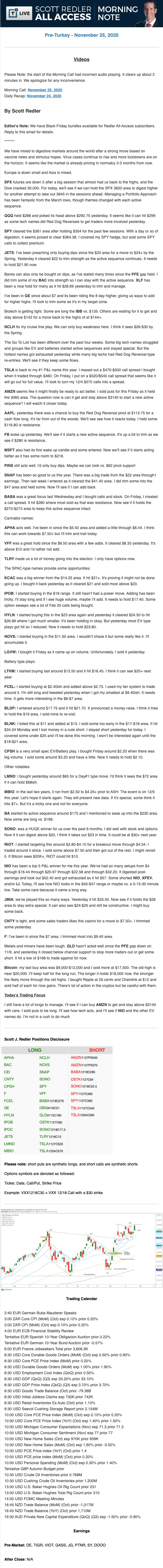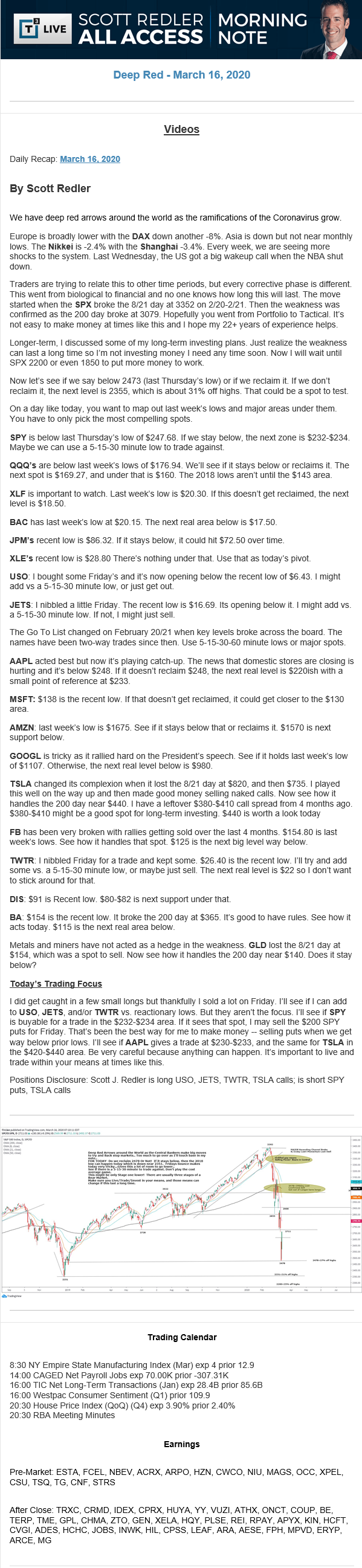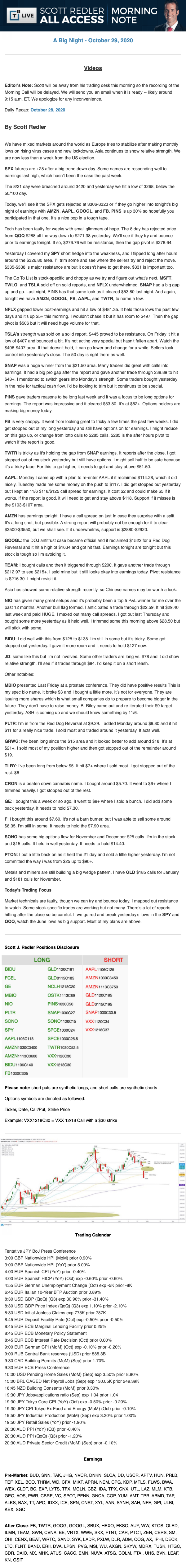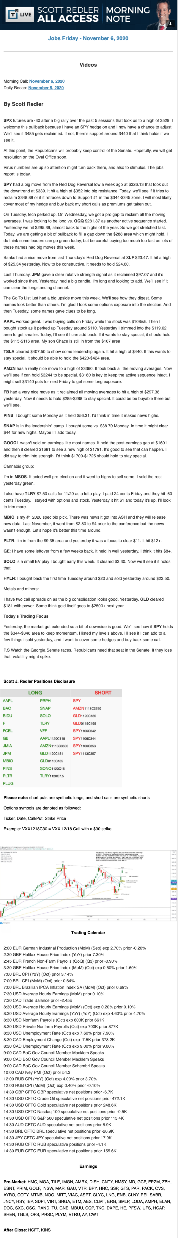 Start every trading day with T3 Live Chief Strategic Officer Scott Redler's complete trading plan.
