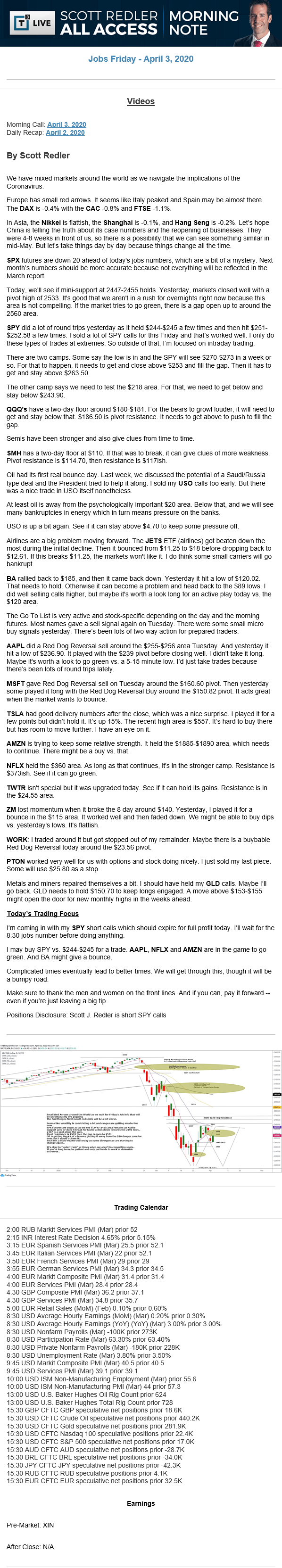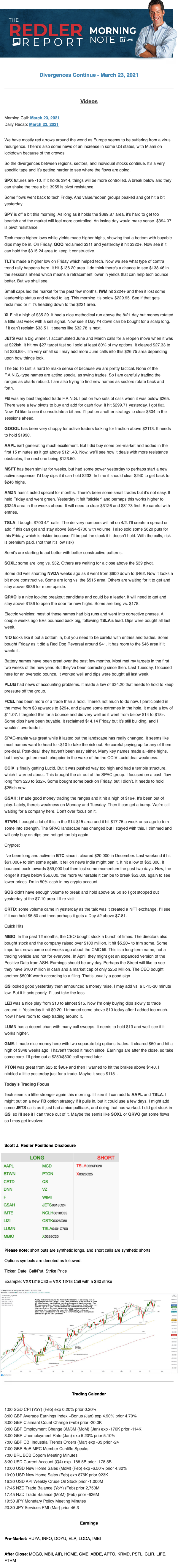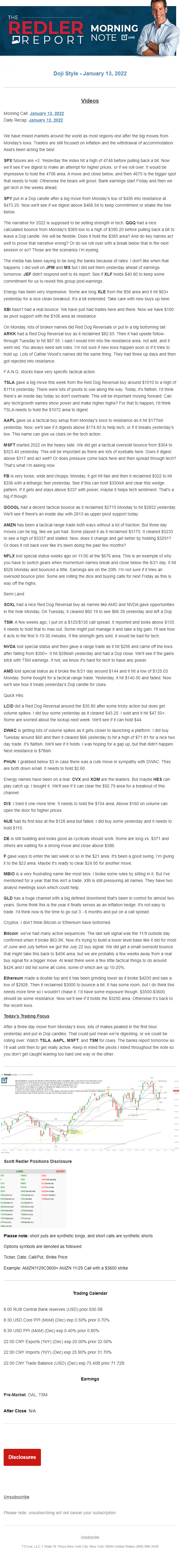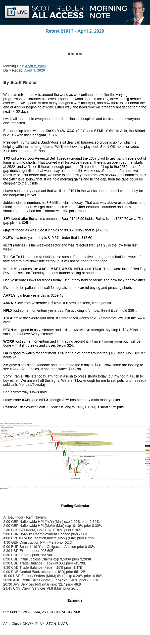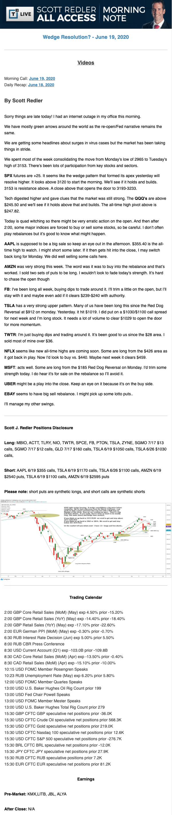 Start every trading day with T3 Live Chief Strategic Officer Scott Redler's complete trading plan.