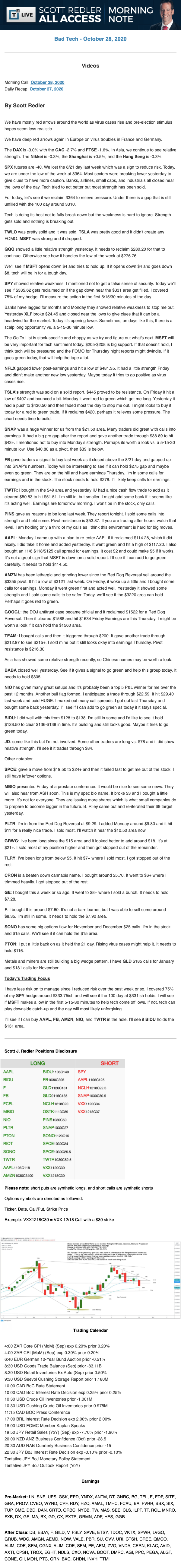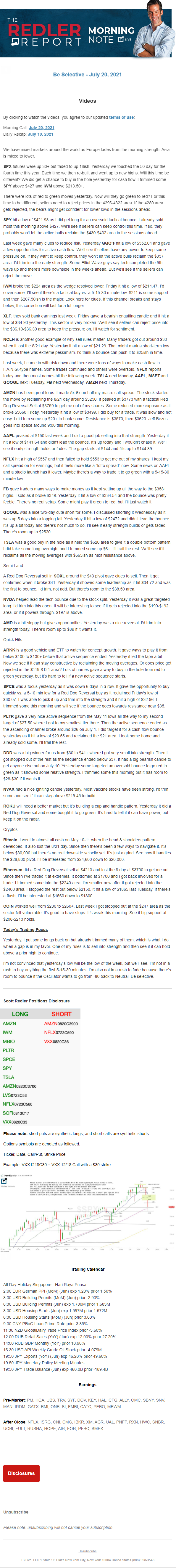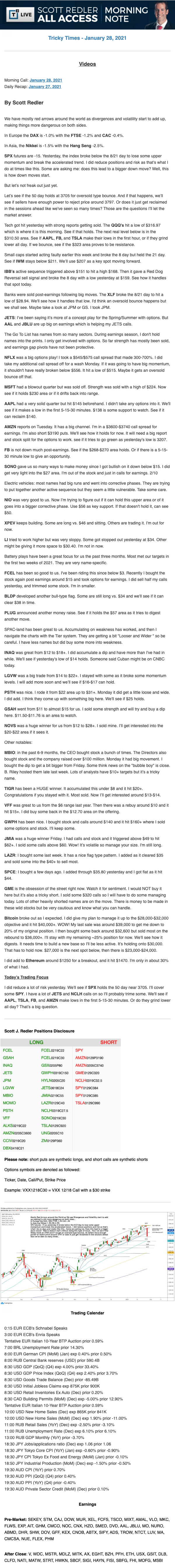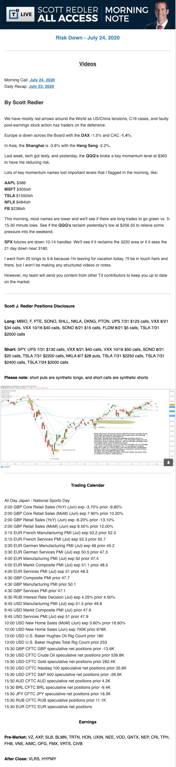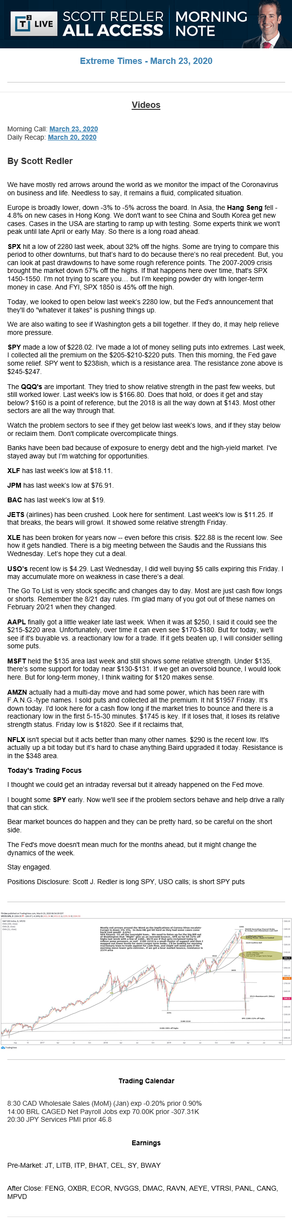 Start every trading day with T3 Live Chief Strategic Officer Scott Redler's complete trading plan.