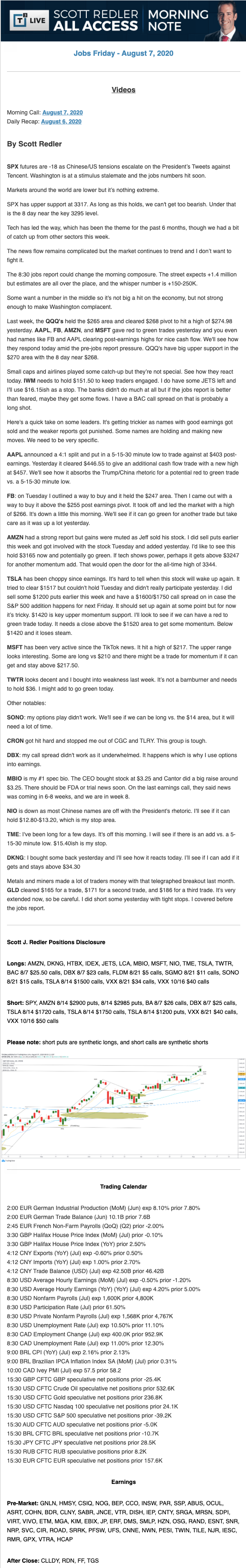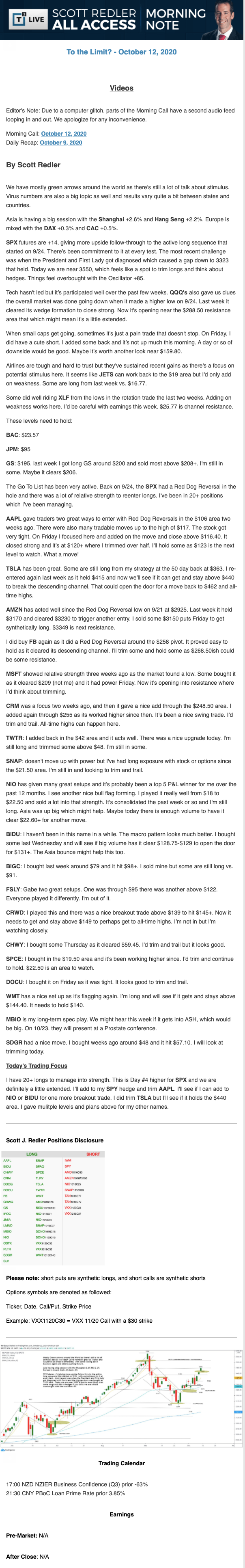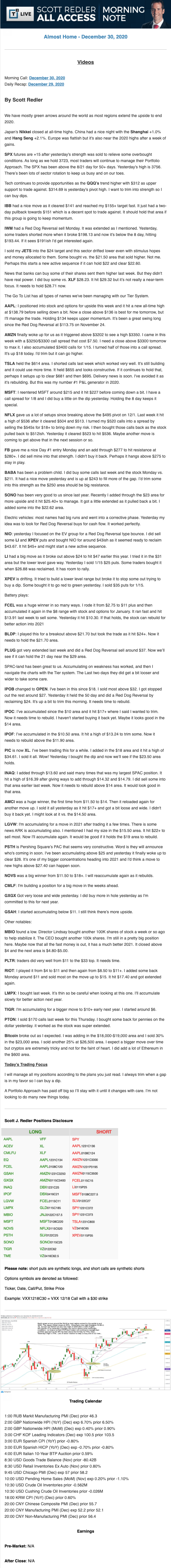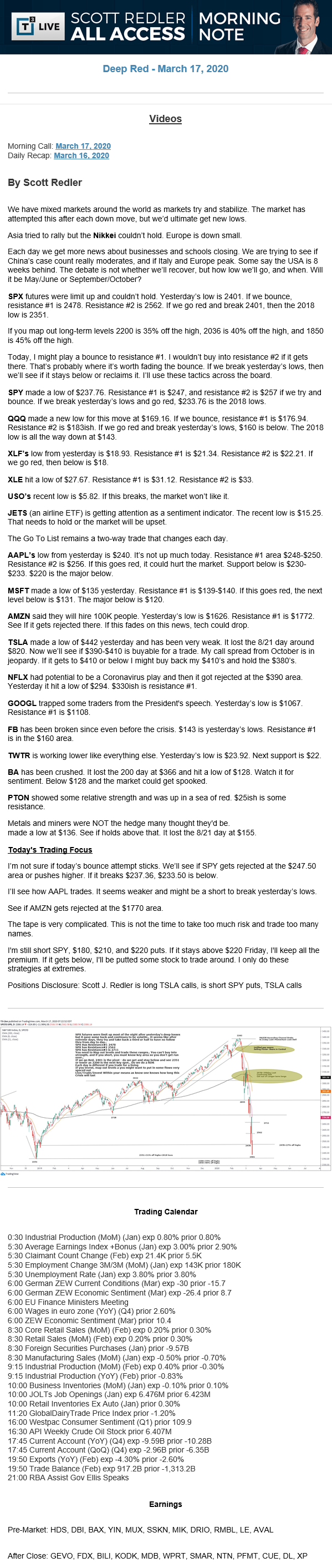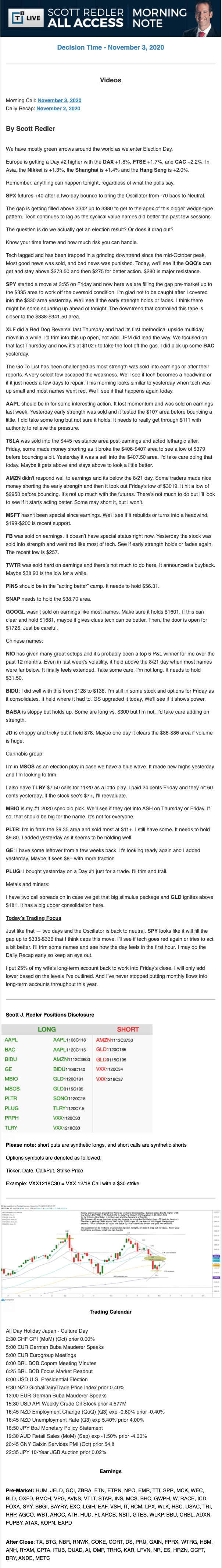 Start every trading day with T3 Live Chief Strategic Officer Scott Redler's complete trading plan.