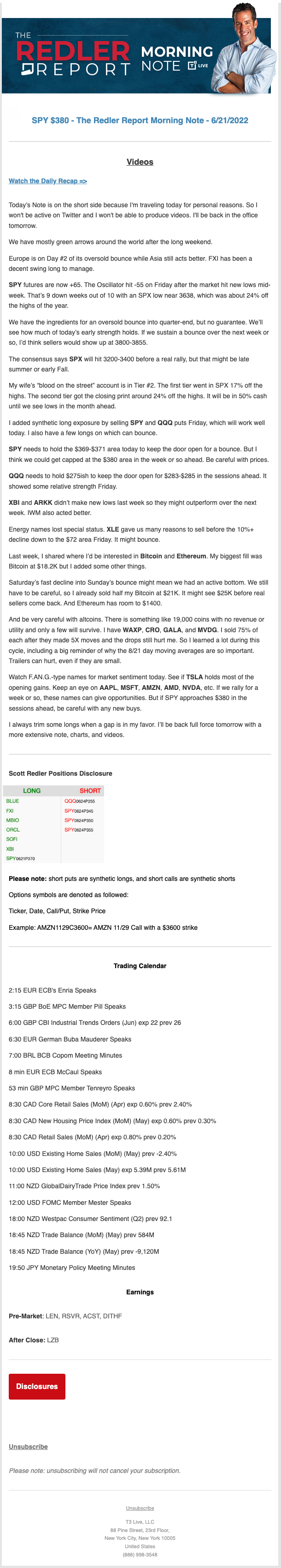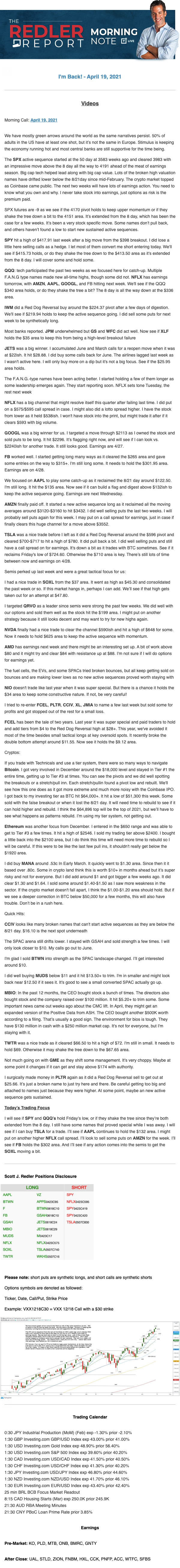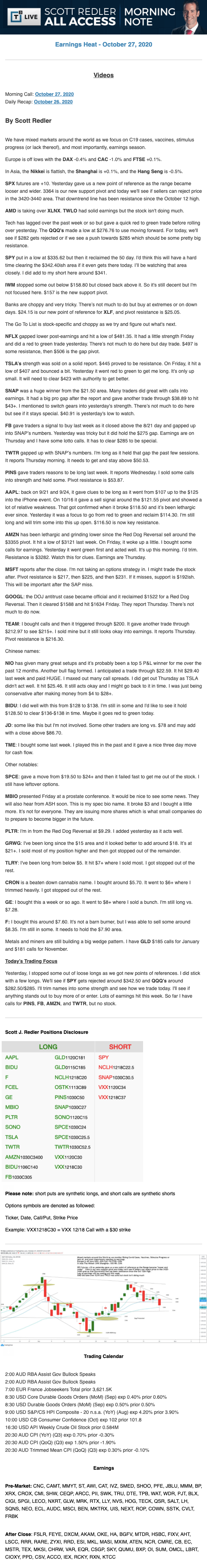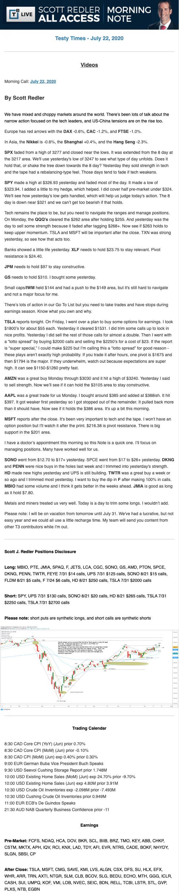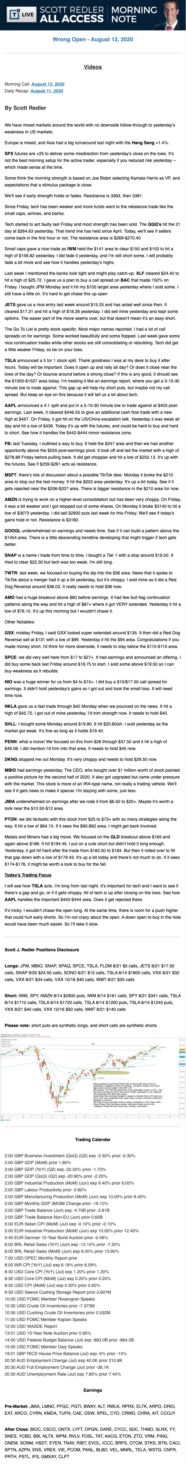 Start every trading day with T3 Live Chief Strategic Officer Scott Redler's complete trading plan.