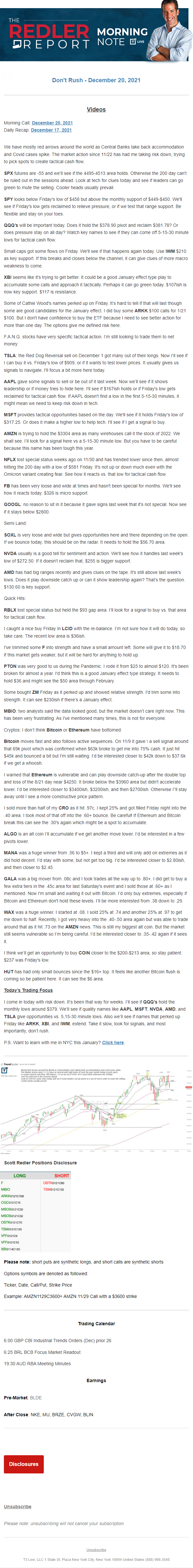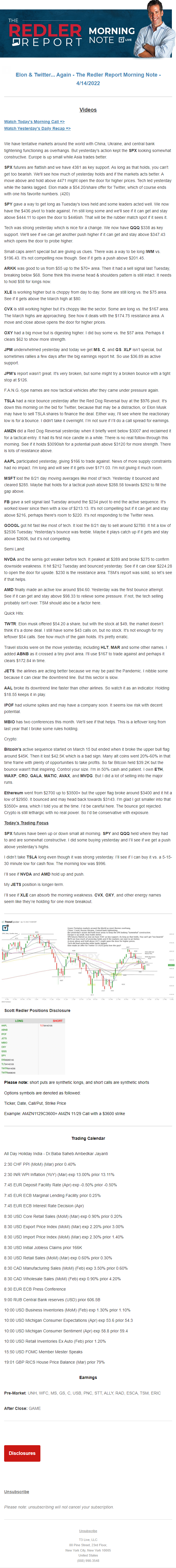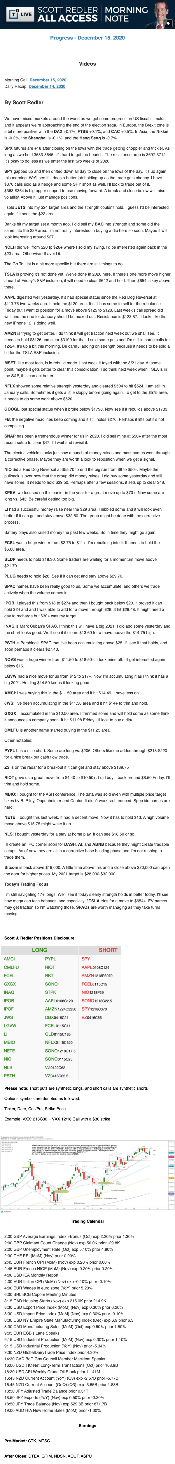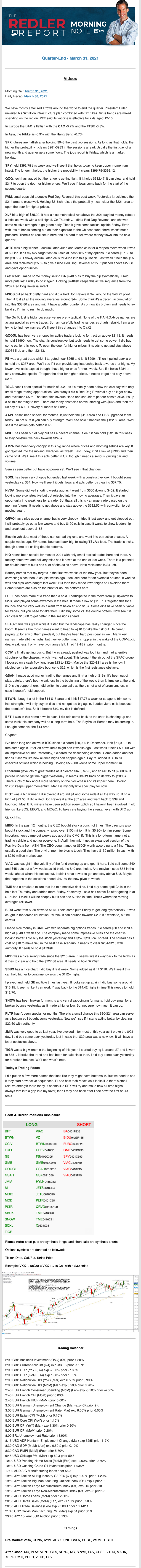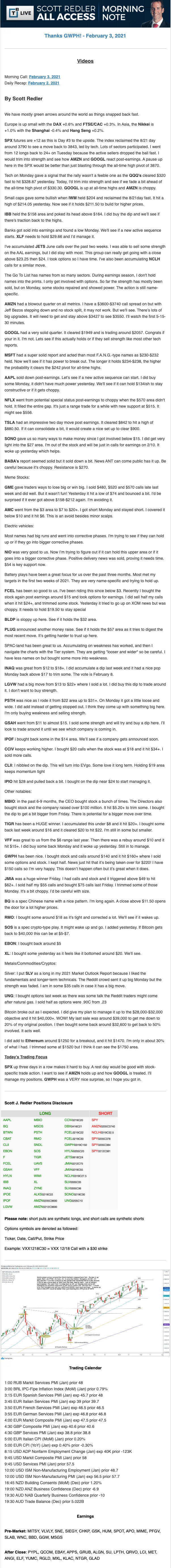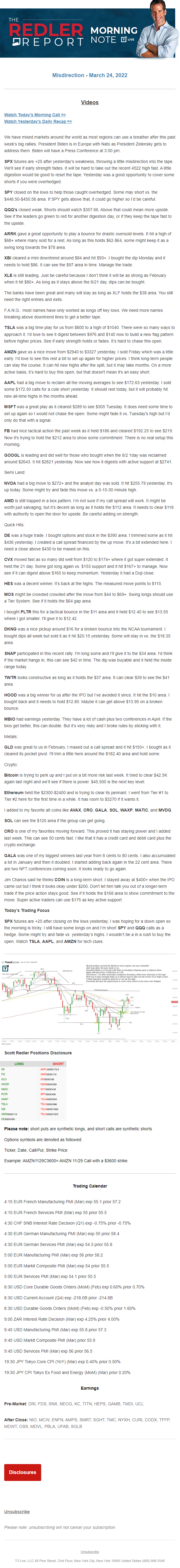 Start every trading day with T3 Live Chief Strategic Officer Scott Redler's complete trading plan.