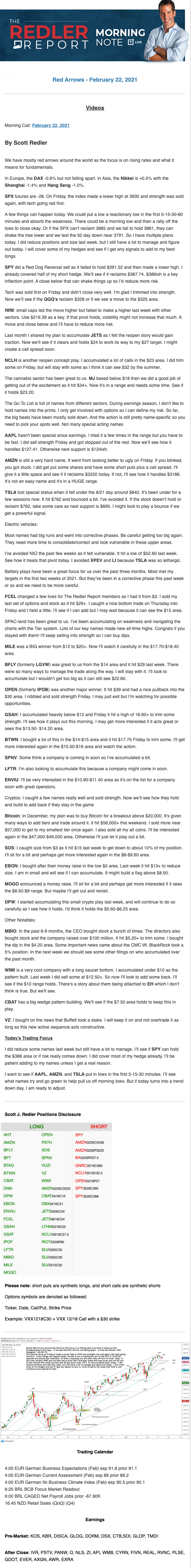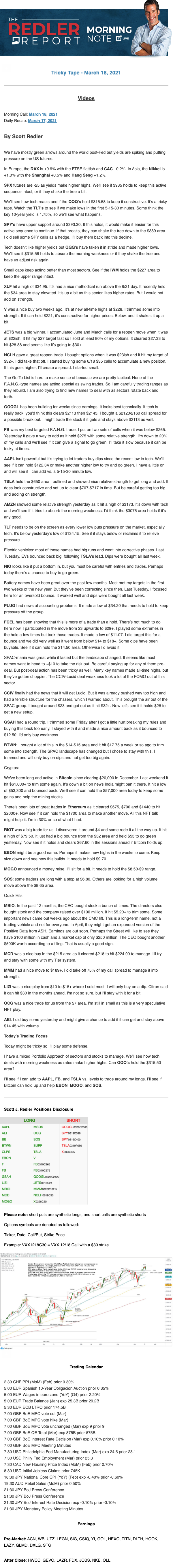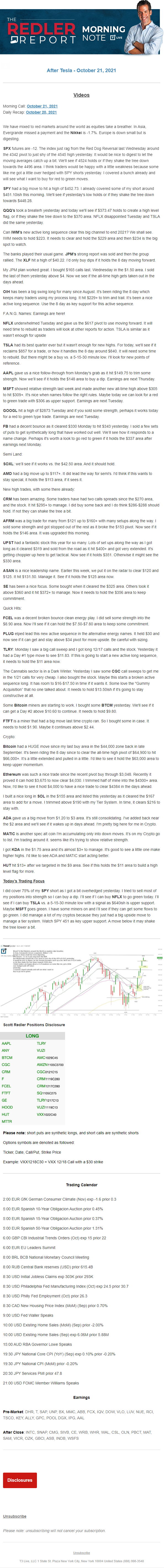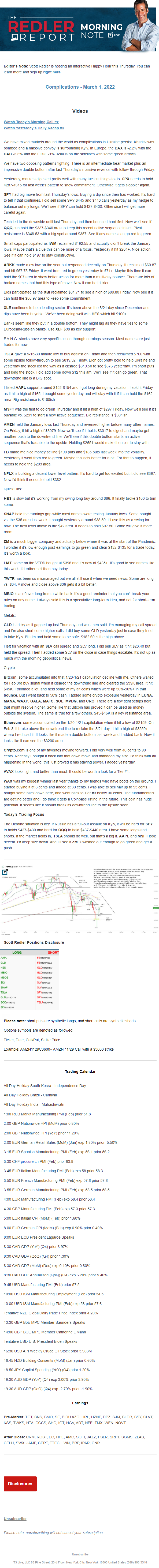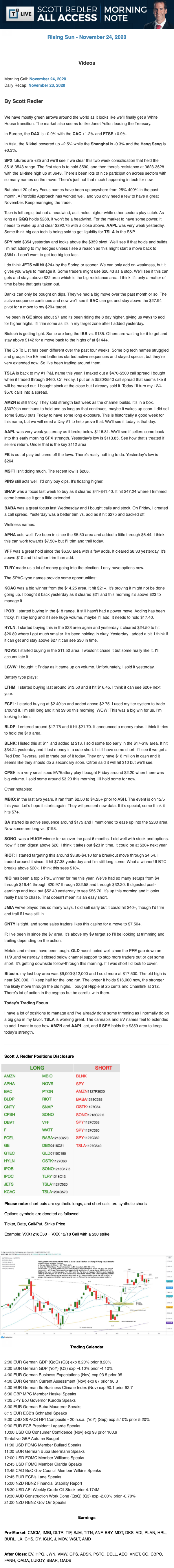 Start every trading day with T3 Live Chief Strategic Officer Scott Redler's complete trading plan.