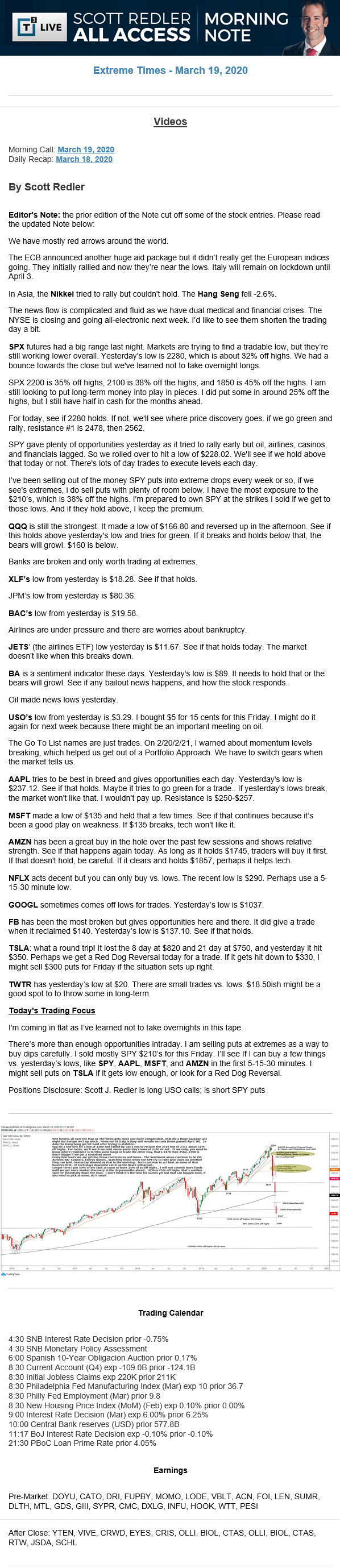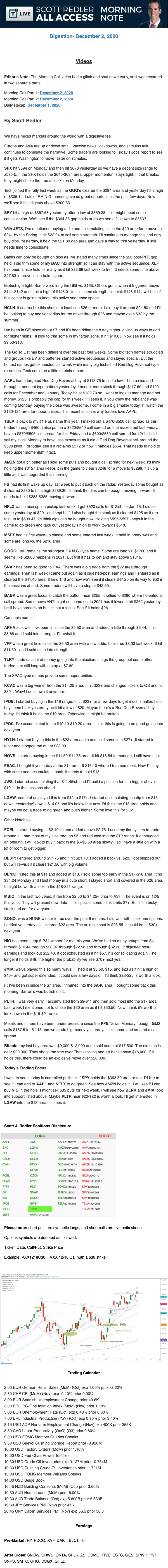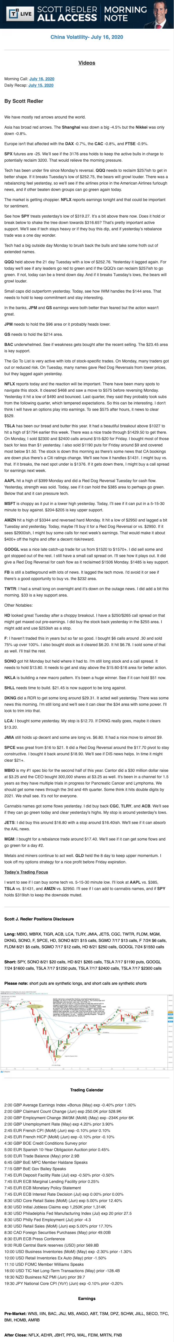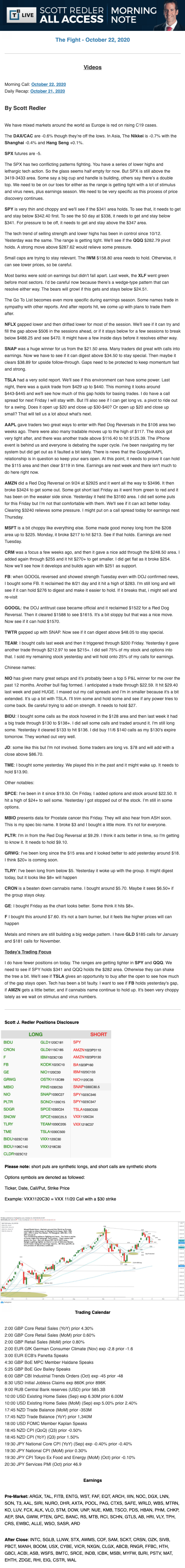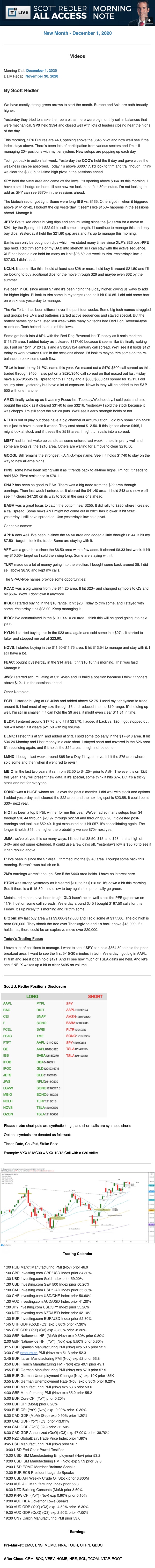 Start every trading day with T3 Live Chief Strategic Officer Scott Redler's complete trading plan.