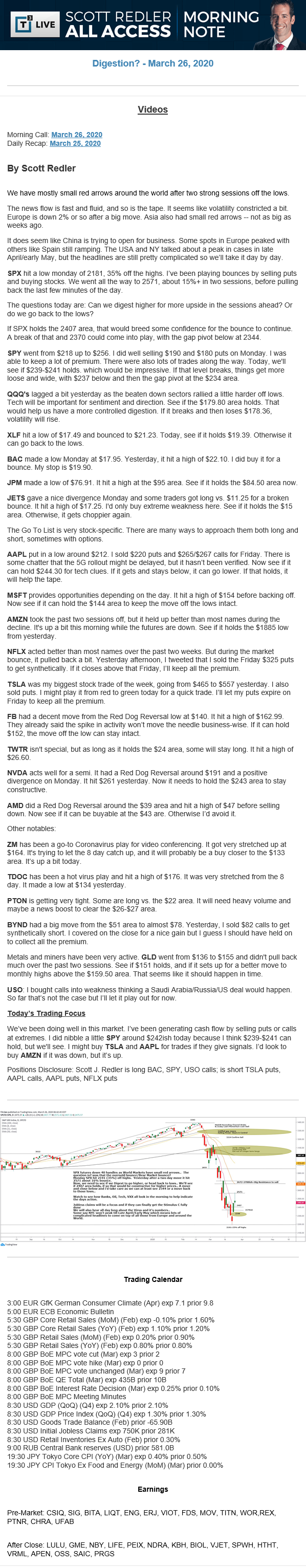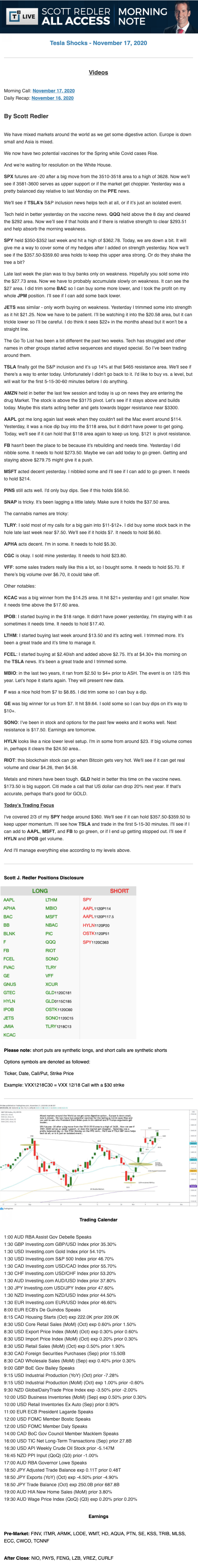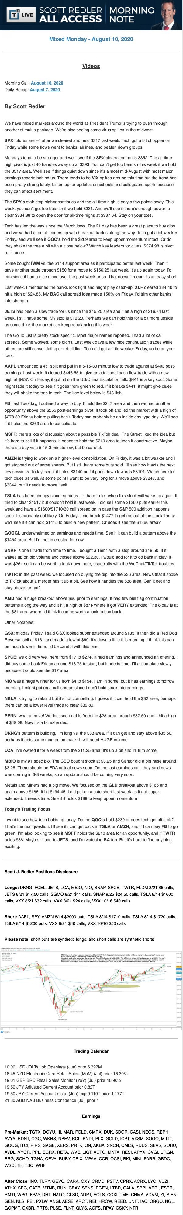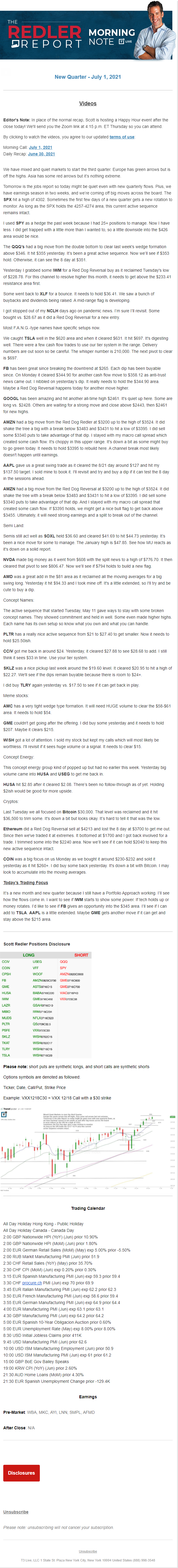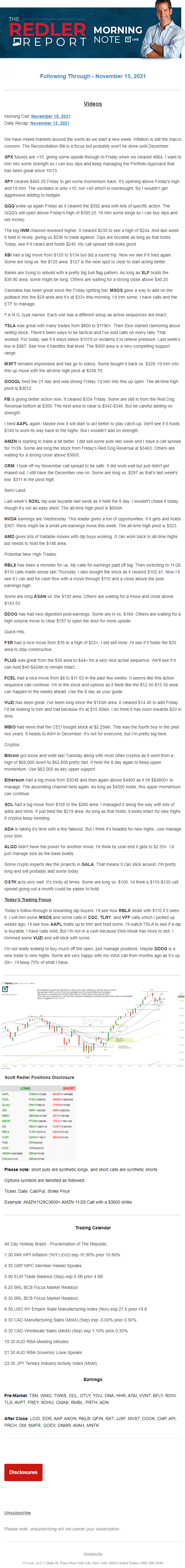 Start every trading day with T3 Live Chief Strategic Officer Scott Redler's complete trading plan.