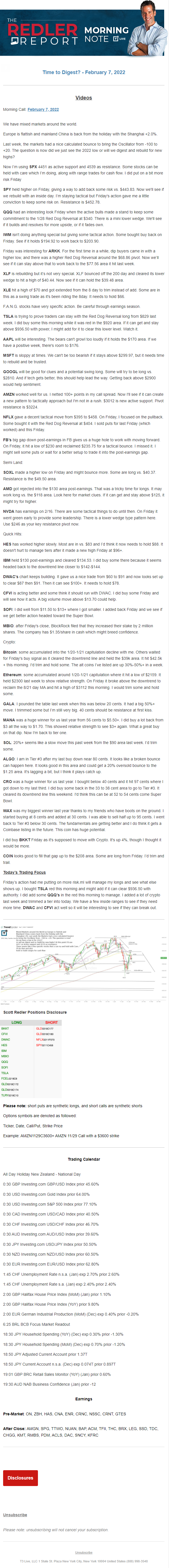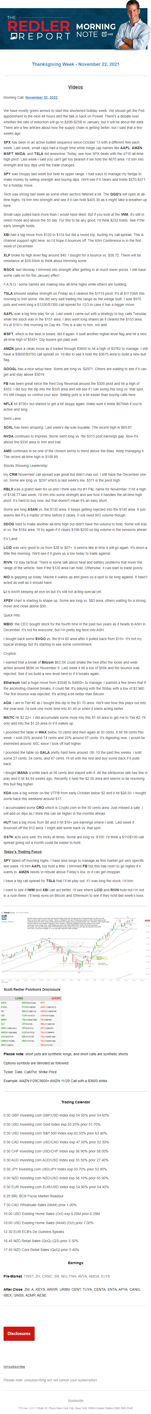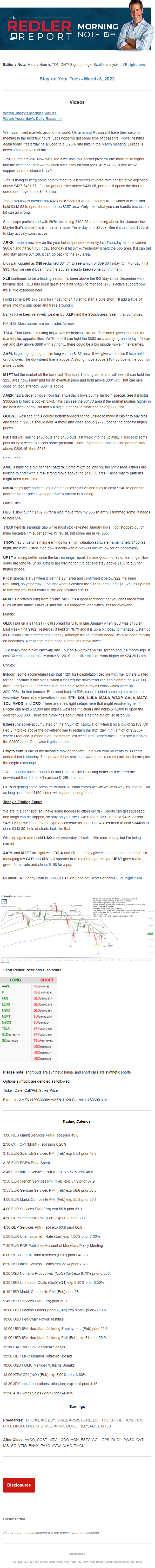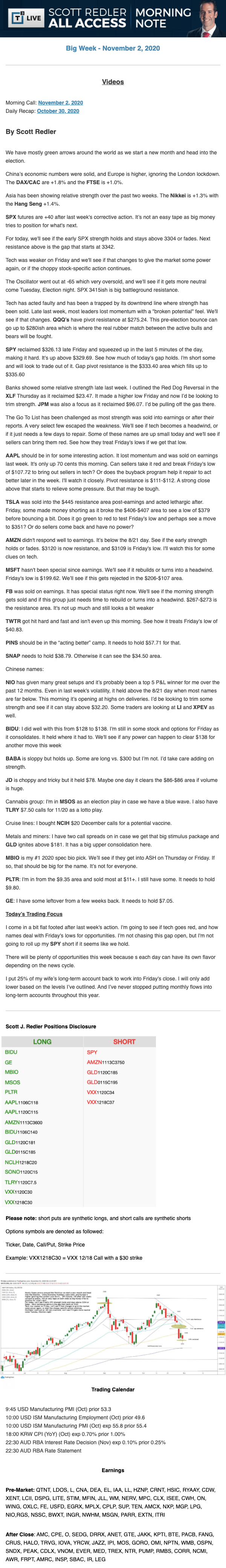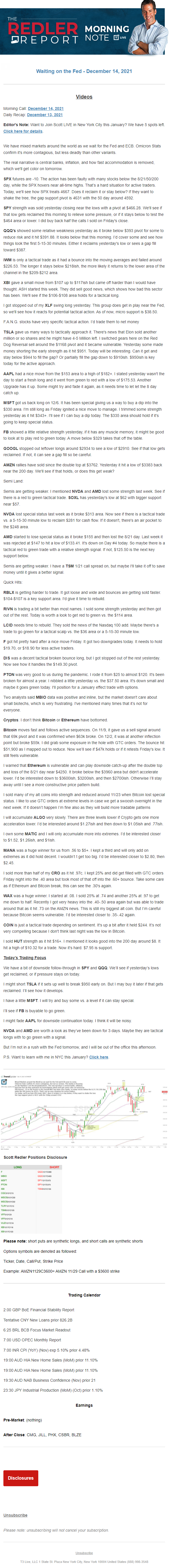 Start every trading day with T3 Live Chief Strategic Officer Scott Redler's complete trading plan.
