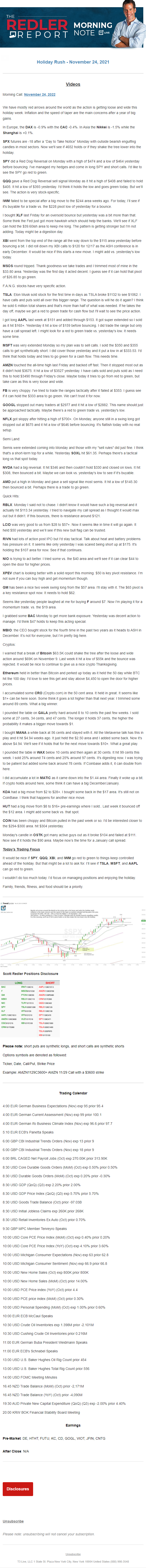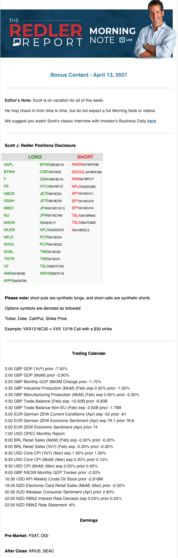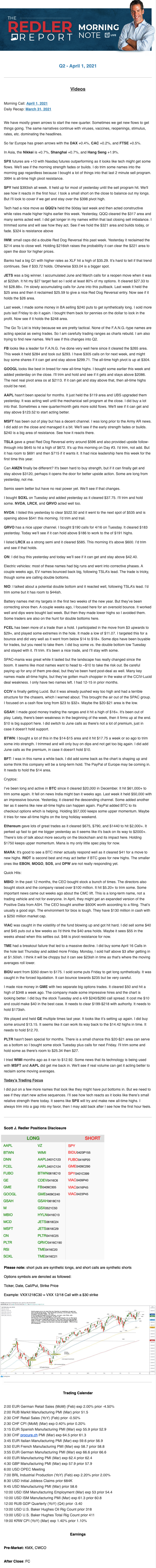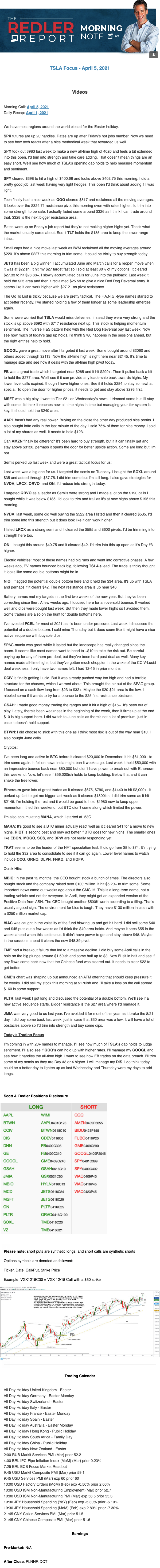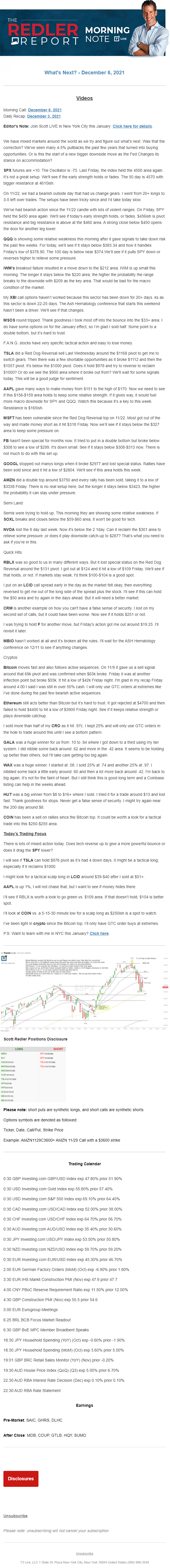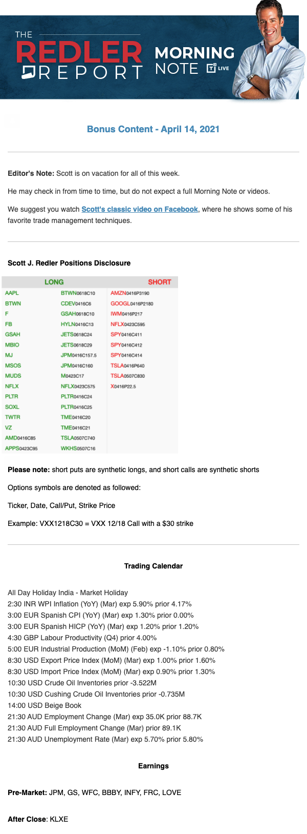 Start every trading day with T3 Live Chief Strategic Officer Scott Redler's complete trading plan.