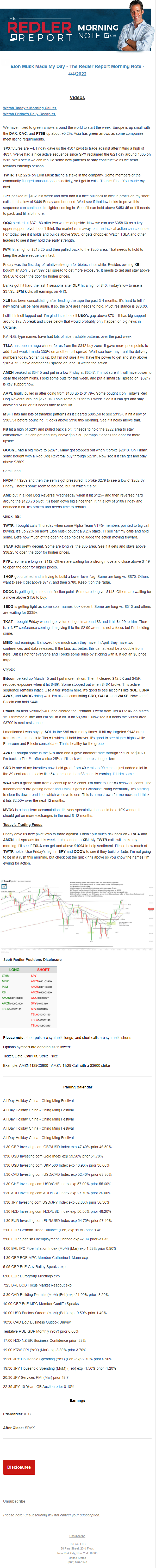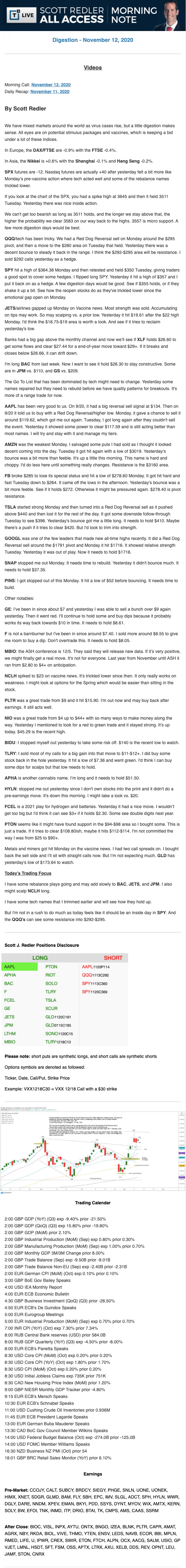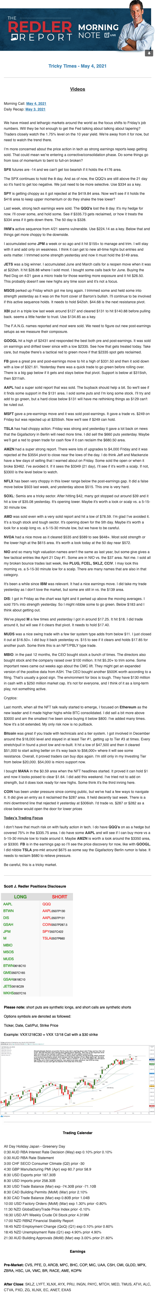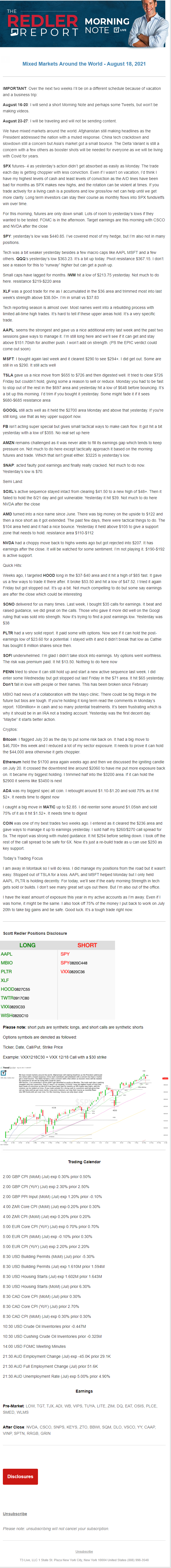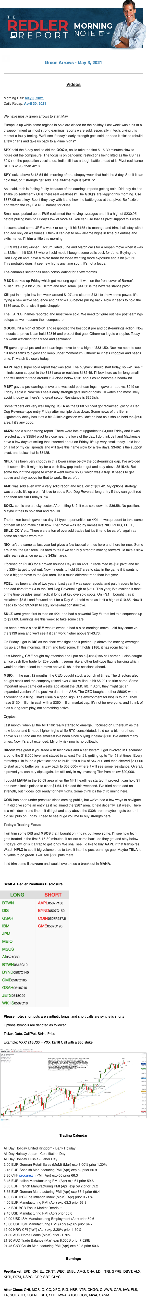 Start every trading day with T3 Live Chief Strategic Officer Scott Redler's complete trading plan.