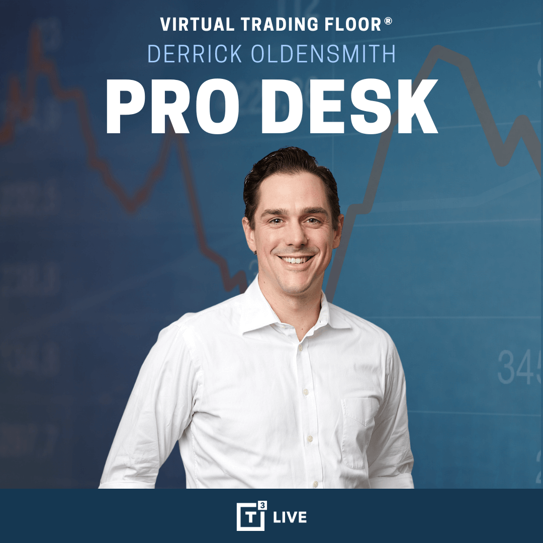 Derrick Oldensmith’s Pro Desk Virtual Trading Floor® is geared towards licensed professionals and/or aspiring Prop traders but is open to anyone looking for professional market guidance. Derrick provides live equities and options ideas, plus pre- and post-market meetings, and weekly member coaching sessions.